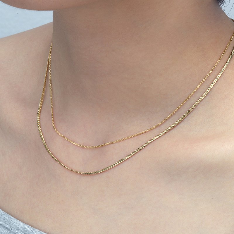 A sleek serpentine chain designed to sit smoothly against the skin with a polished, fluid finish. Crafted from solid 925 sterling silver and finished with gold plating, this 1.8mm chain offers a refined everyday look that works perfectly on its own or layered with pendants.