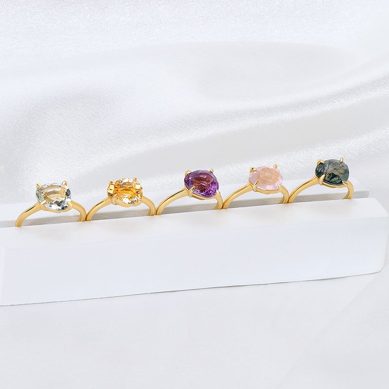 Designed to highlight the natural beauty of organic gemstones, this 10×8mm Irregular Rose-Cut Gemstone Ring features a softly faceted stone set in a refined gold-plated sterling silver band. Each piece embraces subtle asymmetry, allowing light to interact uniquely with every stone for a timeless yet modern look.