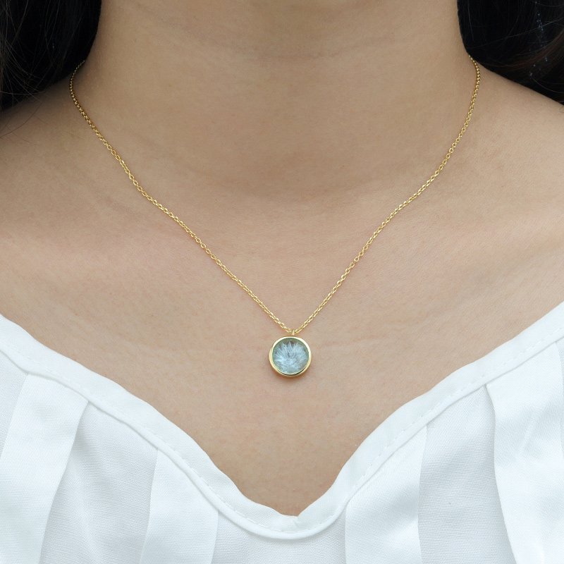 A refined pendant necklace crafted in 925 sterling silver with 18K gold plating, featuring a luminous sky blue crystal inspired by precision glass artistry. Designed for understated elegance, this piece delivers clarity, balance, and modern sophistication.