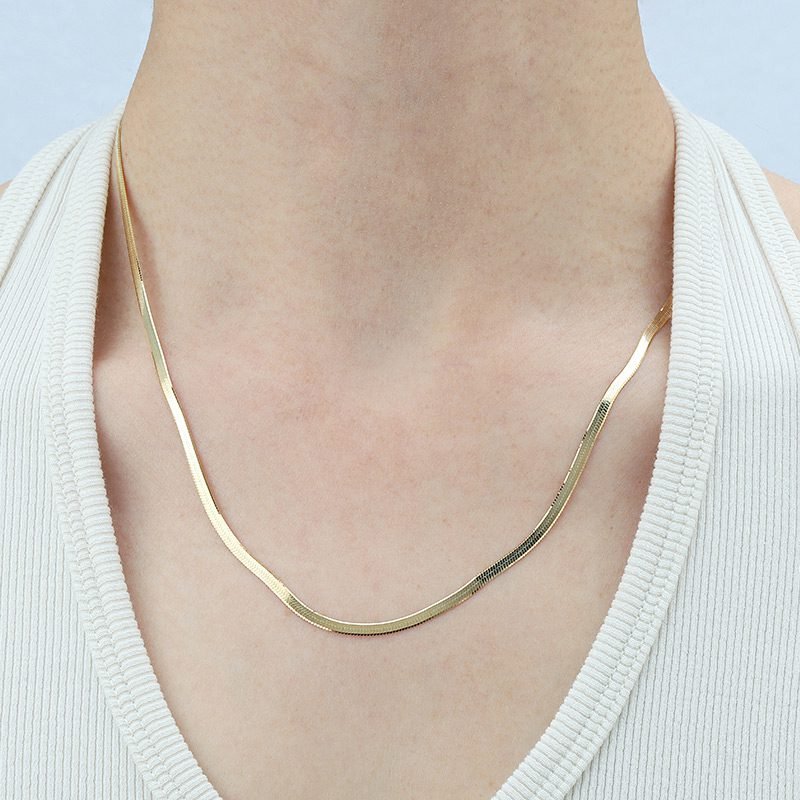 Chain width: 2.5 mm — smooth, flat herringbone that drapes beautifully