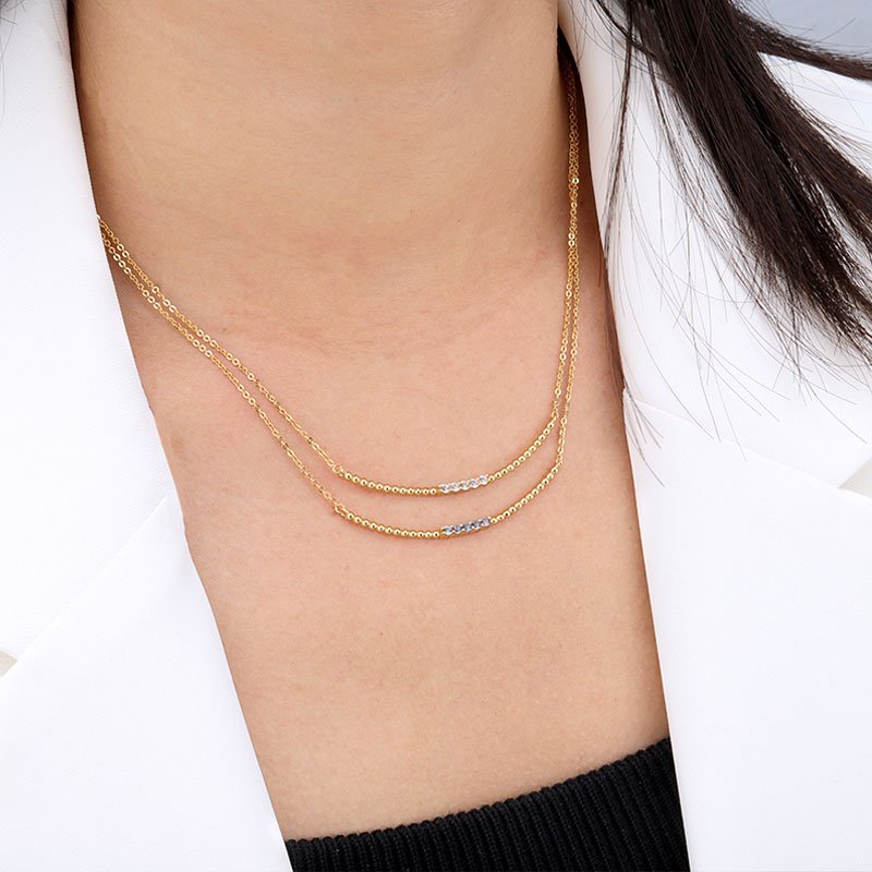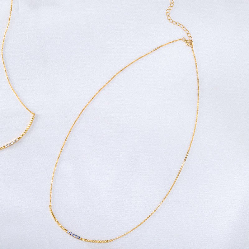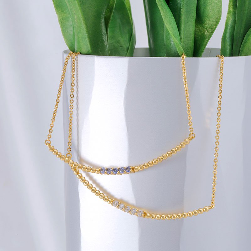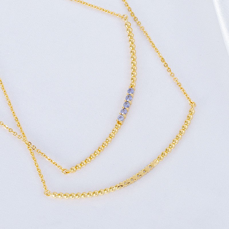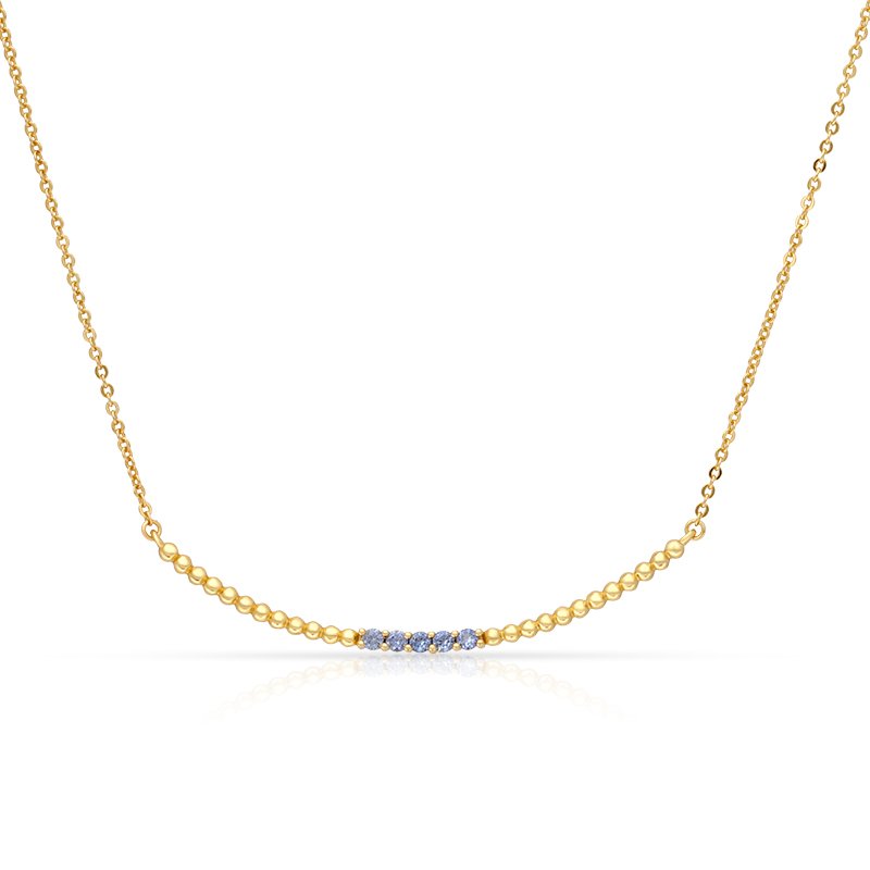 A minimalist bar bead necklace accented with created sapphire stones, designed to deliver subtle brilliance and modern elegance. This refined piece balances clean geometry with delicate sparkle, making it ideal for effortless everyday wear or understated layering.