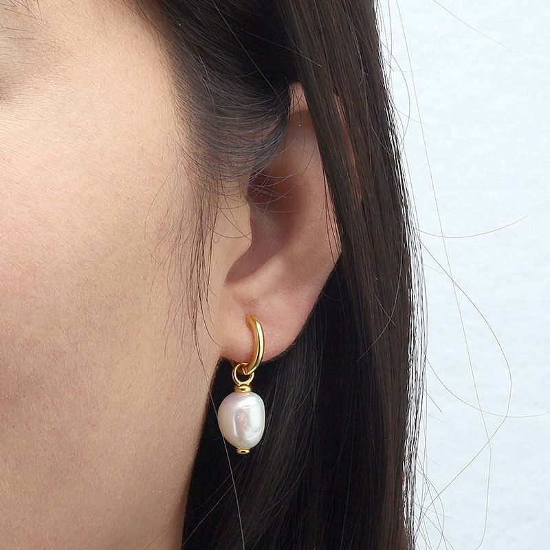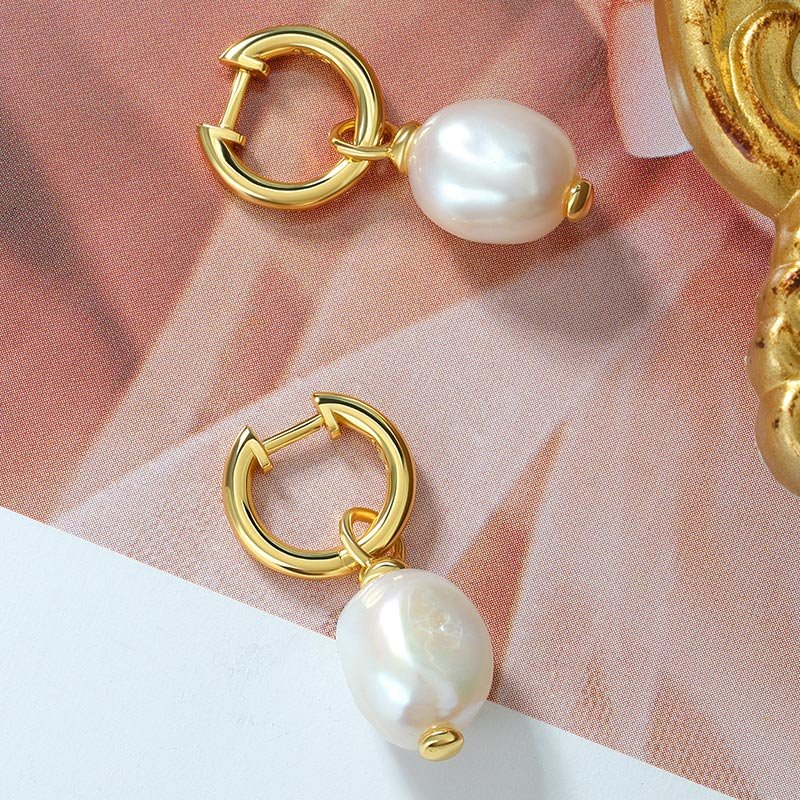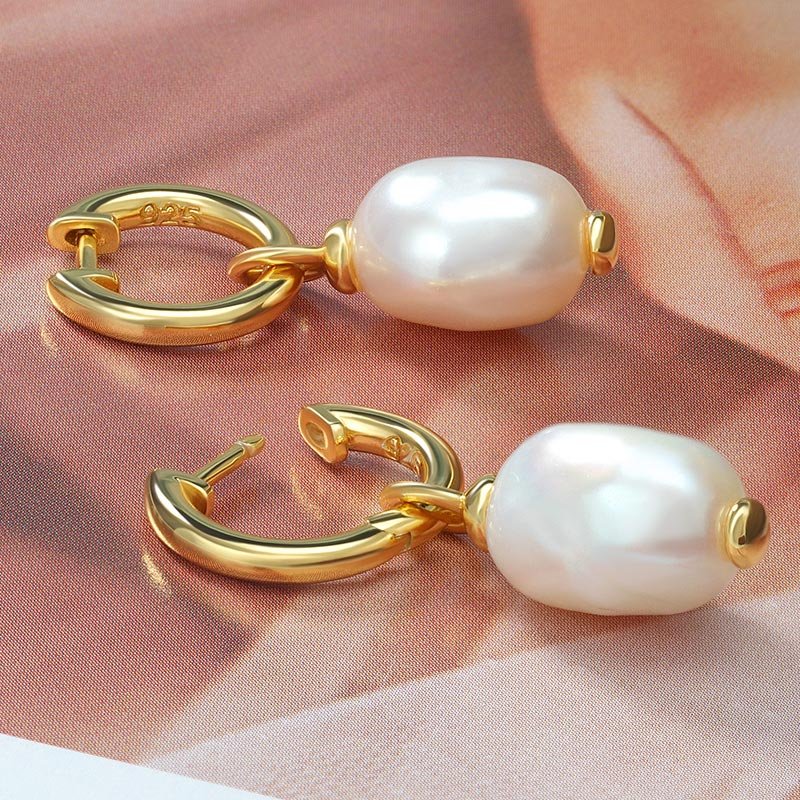 Baroque Pearl Hoop Earrings – 925 Sterling Silver (Gold-Plated)
