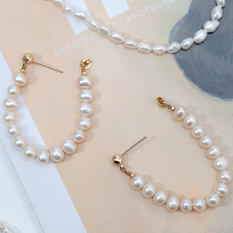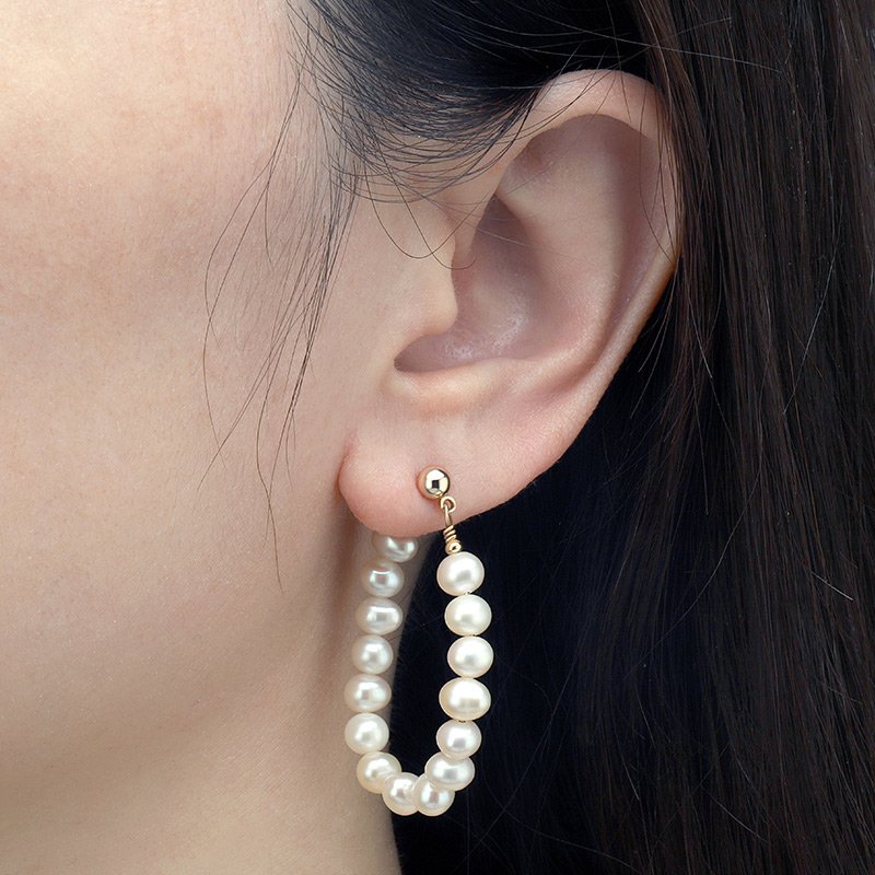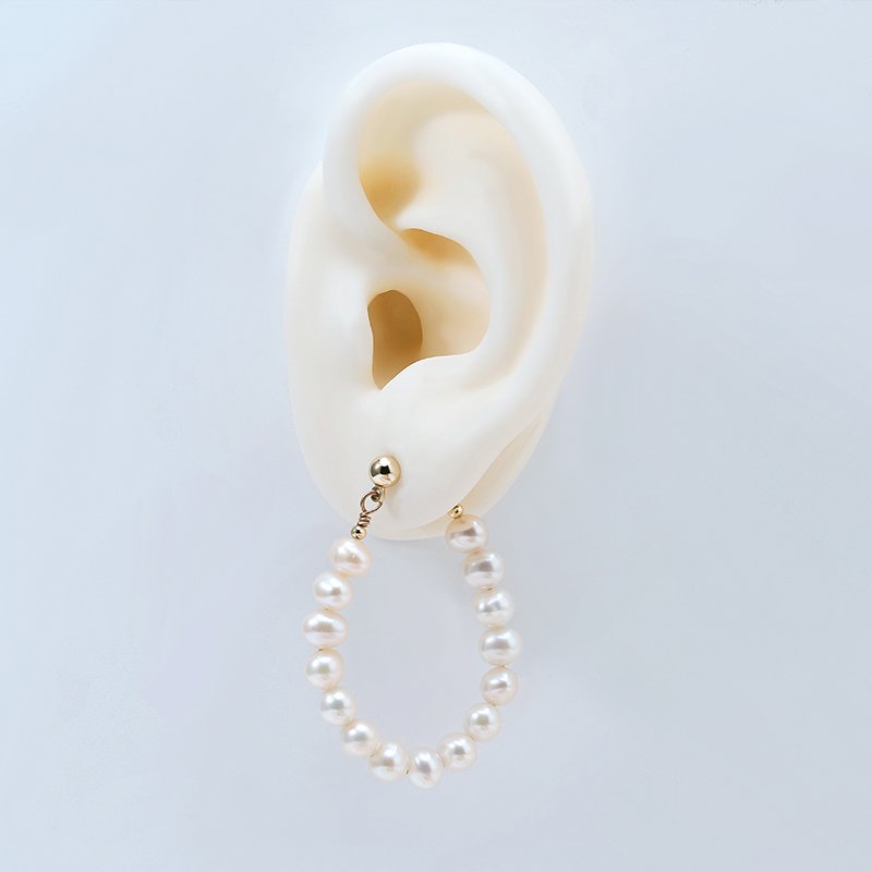 A modern interpretation of timeless elegance, the Baroque Pearl Hoop Earrings showcase a continuous circle of naturally formed baroque pearls, each selected for its soft luster and organic character. Suspended from a refined gold-tone stud, the silhouette balances sculptural presence with graceful movement.