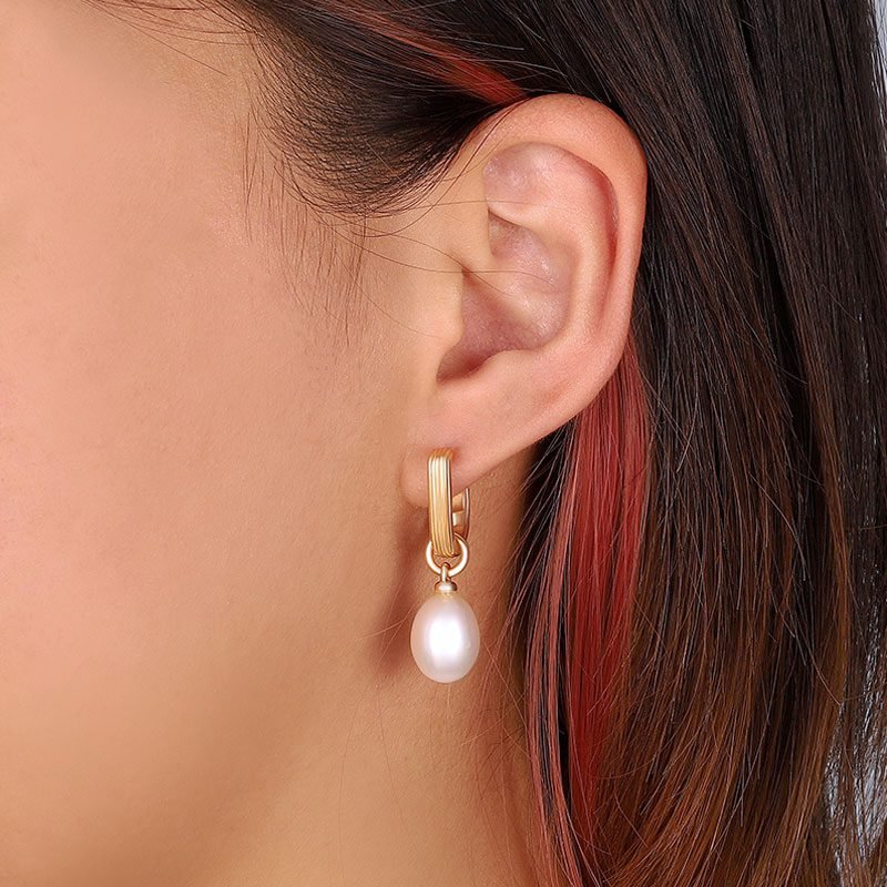 Timeless and luminous, the Baroque Pearl Huggie Earring pairs an organic freshwater baroque pearl with a sleek gold-plated huggie hoop. The natural, irregular pearl shape adds character, while the polished finish keeps the look refined for everyday or evening wear.