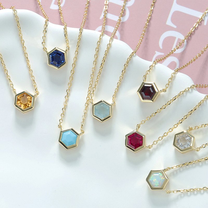 A modern geometric pendant showcasing a warm golden citrine, designed to capture light with precision and elegance. The hexagon silhouette delivers architectural balance, while the vibrant stone adds a refined glow—making this piece ideal for everyday sophistication or a meaningful gift.