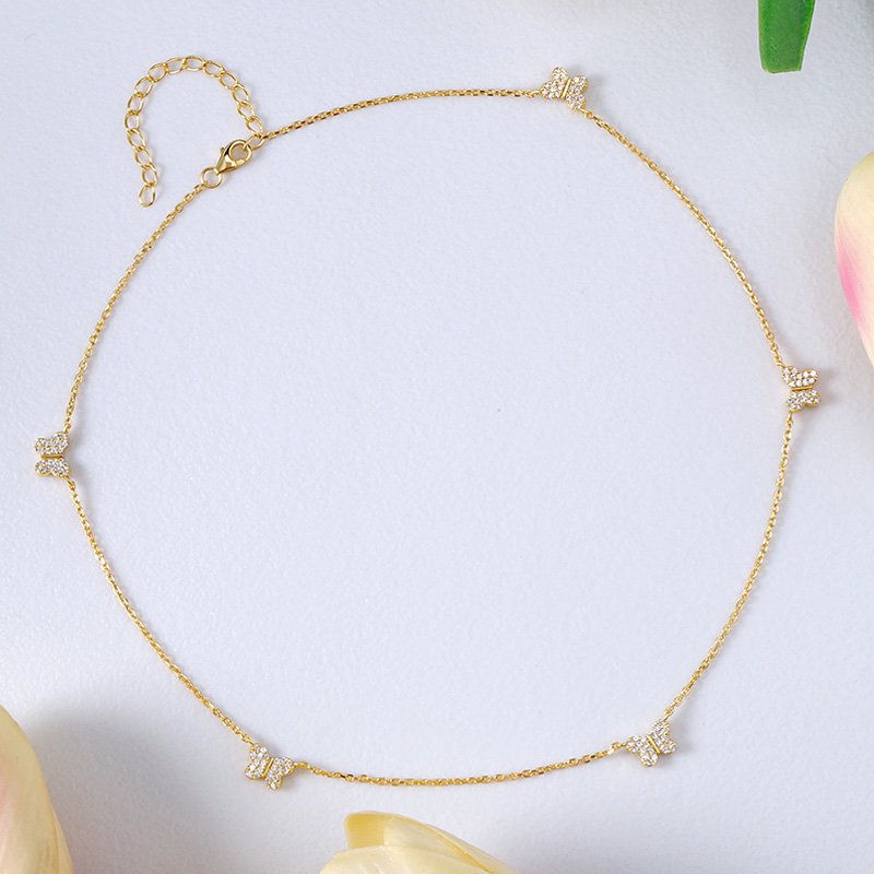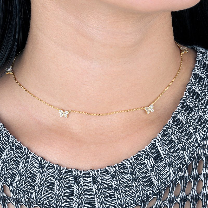 Delicate yet distinctive, this butterfly choker necklace blends fine craftsmanship with refined femininity. Designed with a graceful double-layer silhouette, it features pavé-set cubic zirconia butterflies that add subtle brilliance while maintaining an elegant, lightweight profile suitable for daily wear or layering.