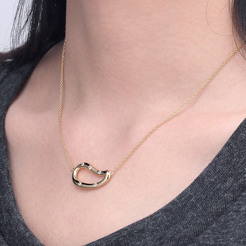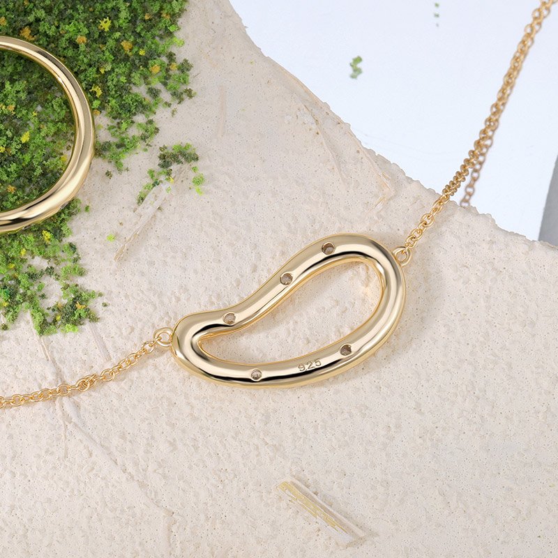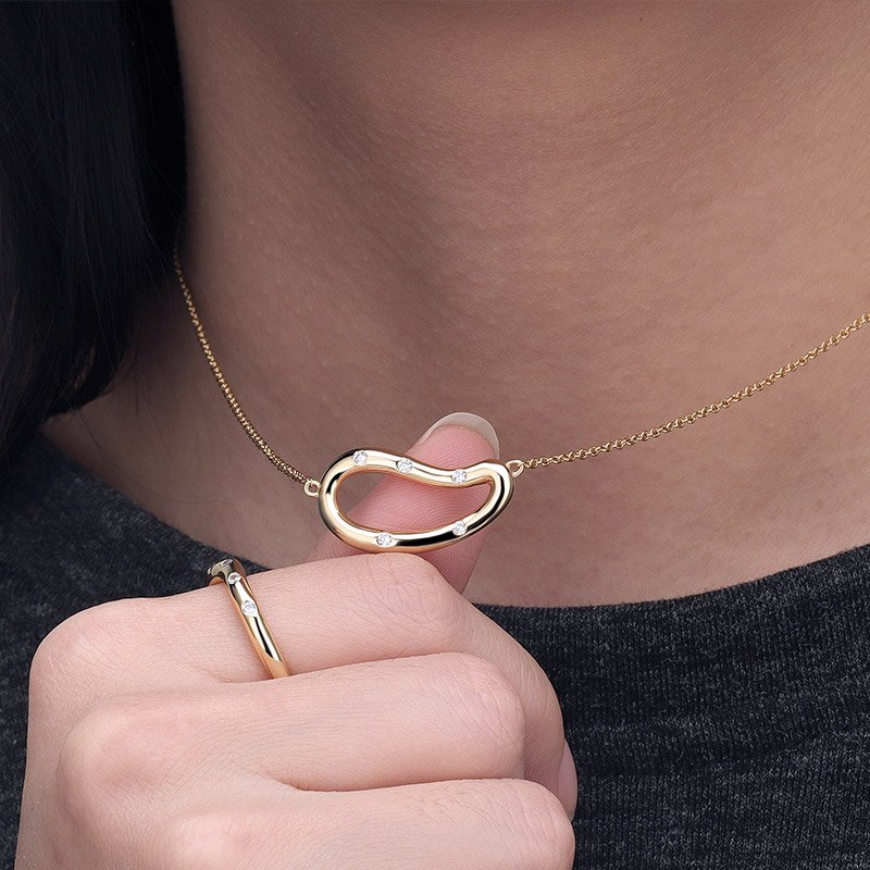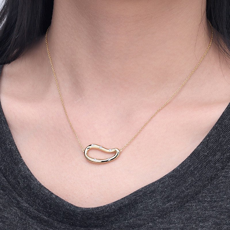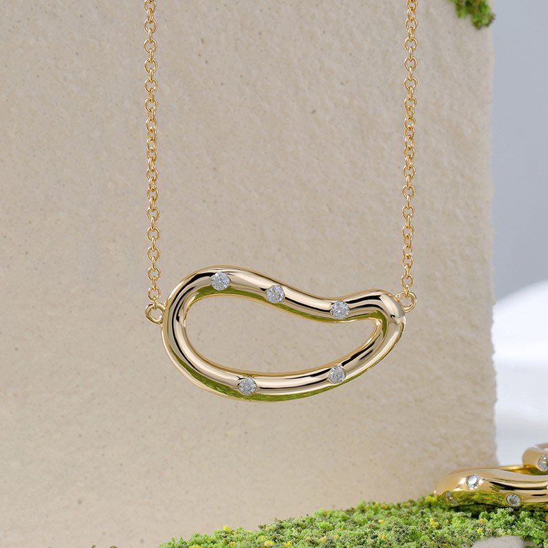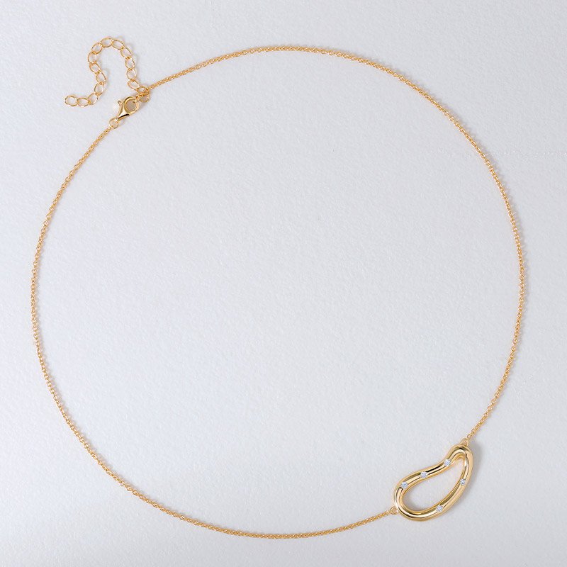Designed with soft, organic curves, this refined pendant necklace brings a modern sculptural touch to everyday elegance. Crafted in sterling silver and finished with luminous 18K gold plating, it is accented with delicate cubic zirconia stones for a subtle, sophisticated sparkle.