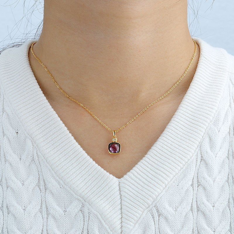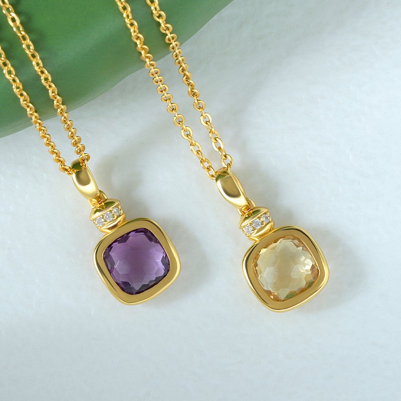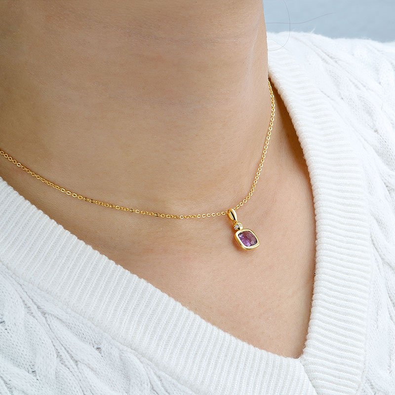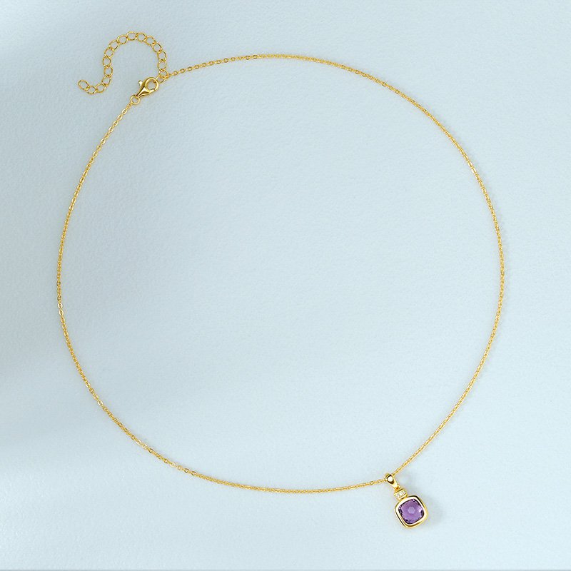 This Cushion Cut Amethyst Necklace is designed to highlight the natural beauty of a softly faceted gemstone framed in a smooth, refined setting. The balanced proportions and gentle cushion silhouette create an elegant focal point that feels timeless yet modern.