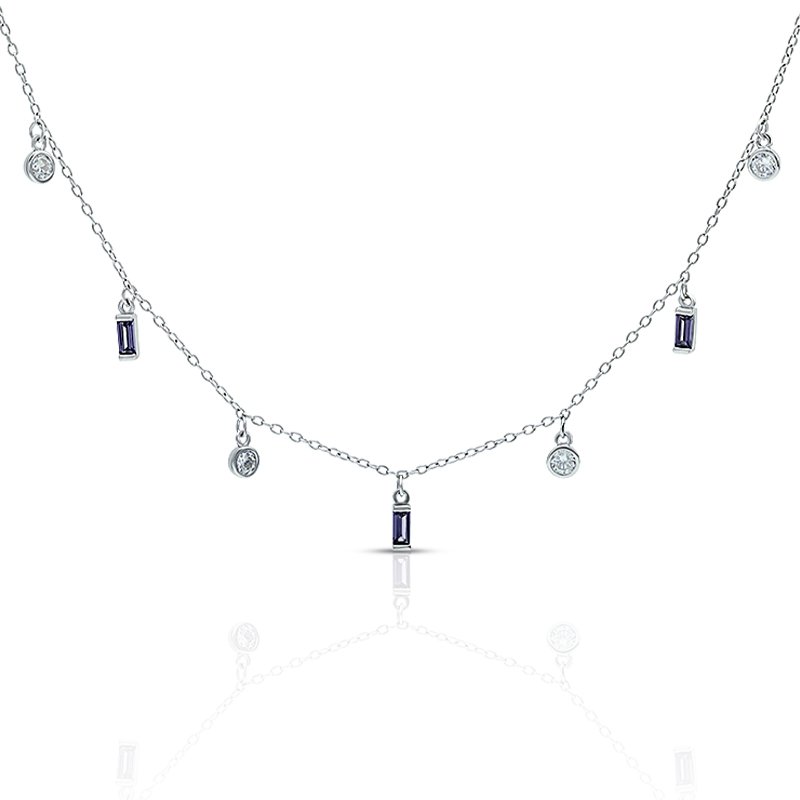A delicate charm necklace featuring bezel-set cubic zirconia accents and slim vertical charm details. Crafted from solid 925 sterling silver with an elegant 18K gold–tone finish, this piece offers a refined balance of sparkle and movement, perfect for everyday wear or layered styling.