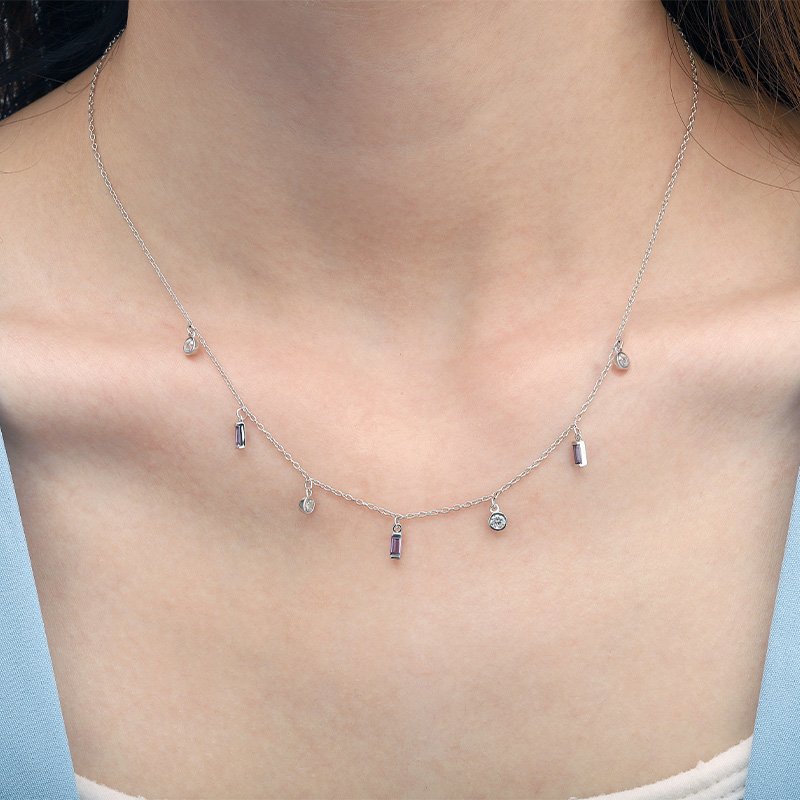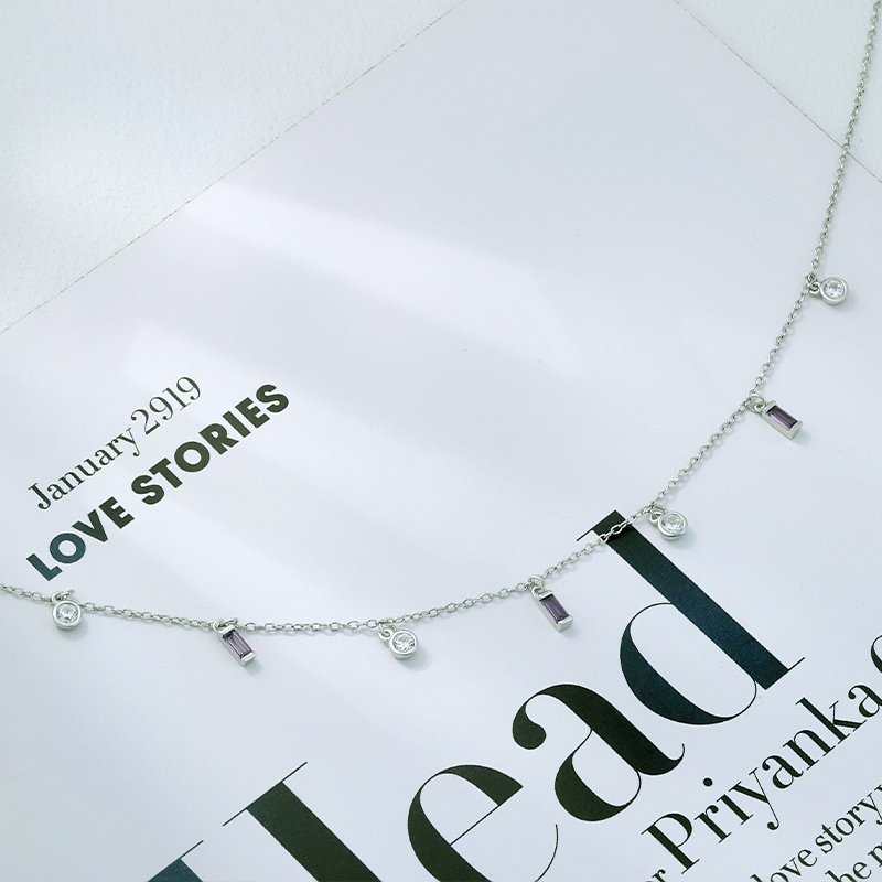 Dainty charm chain necklace with multiple CZ accents for subtle sparkle