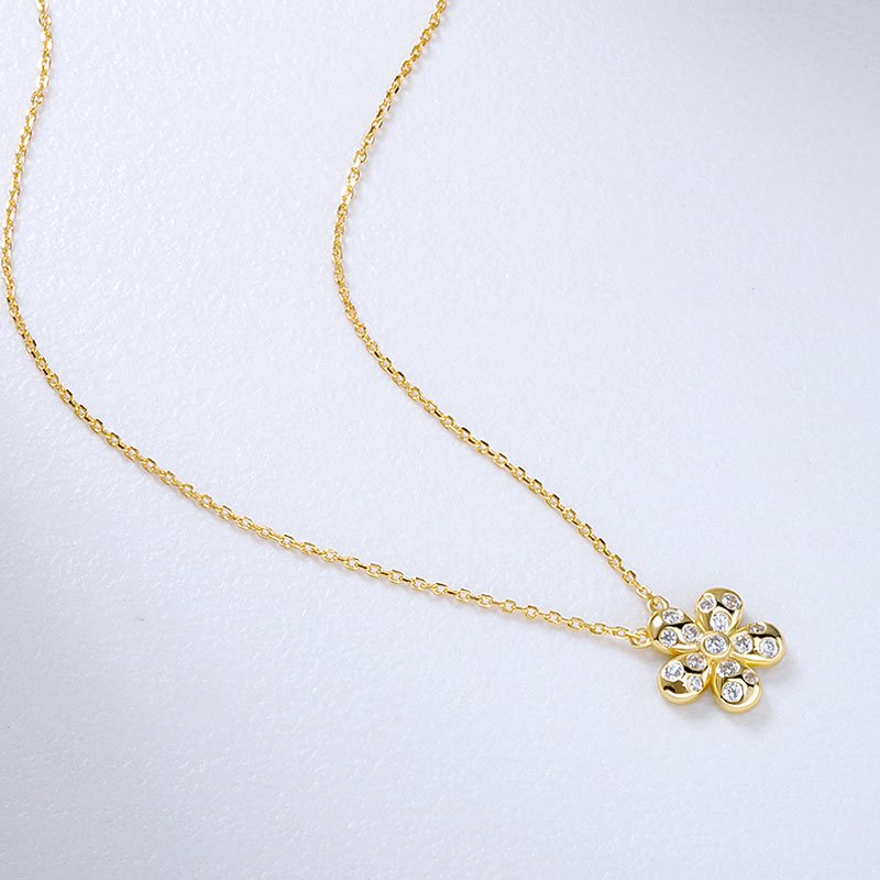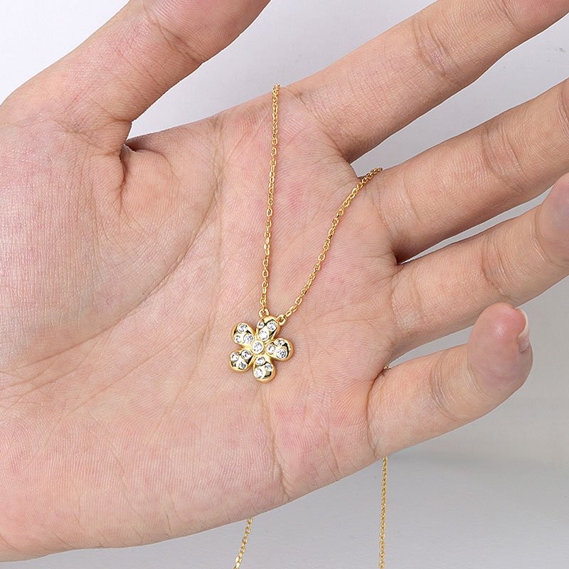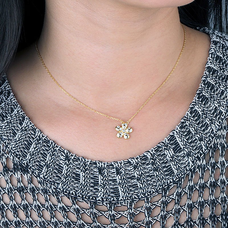 A refined floral pendant designed to capture light with subtle brilliance, this cubic zirconia flower necklace offers timeless elegance with a modern finish. The balanced proportions and soft sparkle make it an effortless piece for daily wear or understated evening styling.