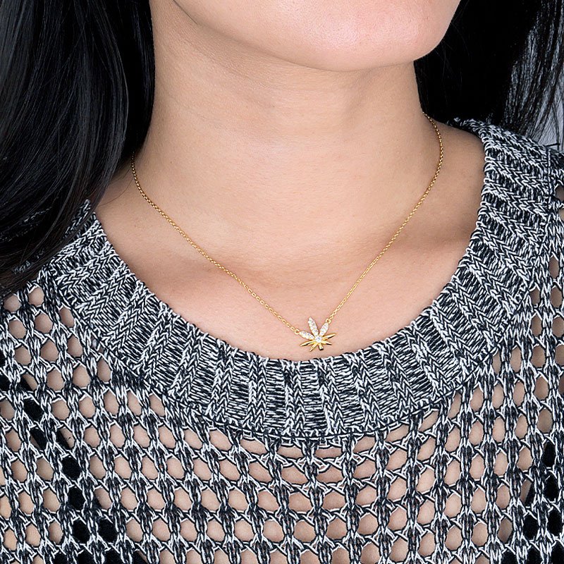 Features a leaf-inspired pendant set with 5A cubic zirconia