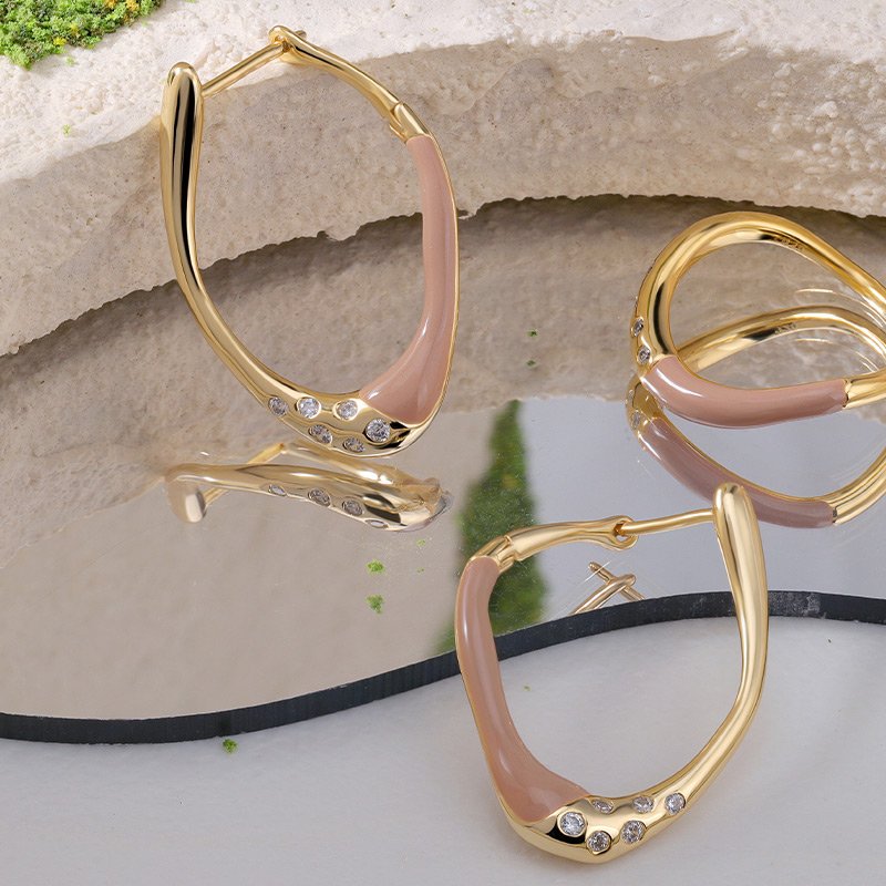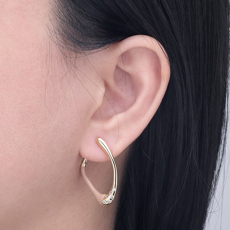 Sculpted with soft curves and refined contrast, the Enamel Curved Huggie Earrings bring a modern elegance to everyday styling. Designed to sit close to the ear, this polished silhouette balances subtle enamel detailing with delicate stone accents for a look that feels effortless yet elevated.