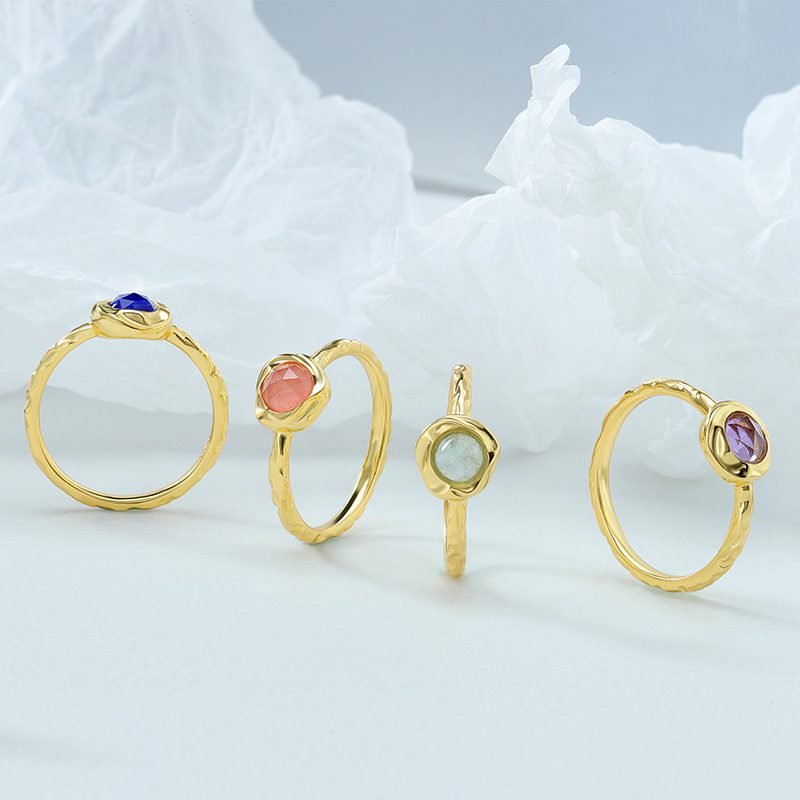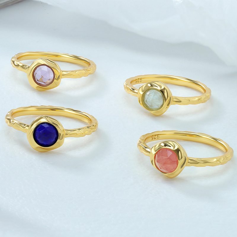 Cool, ocean-blue sparkle in a sleek everyday silhouette. The Faceted Aquamarine Ring centers a bright, transparent aquamarine in a low-profile, gold-plated sterling setting, with a smooth inner band for easy, all-day wear.