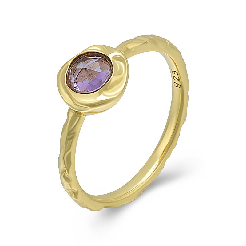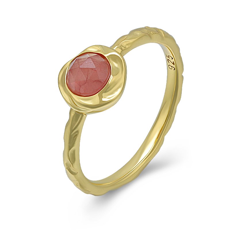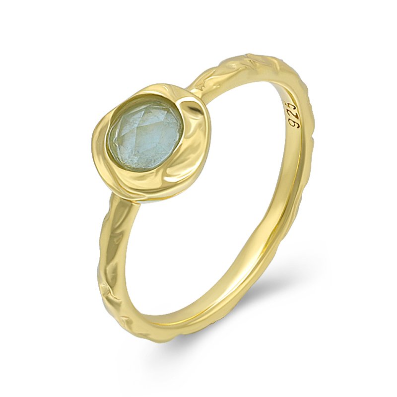 A refined gemstone ring showcasing a round faceted stone set in a softly sculpted bezel. The organic band profile adds subtle texture while keeping the design elegant and wearable. Each stone option offers a distinct color story, making this ring ideal for stacking, gifting, or everyday statement wear.