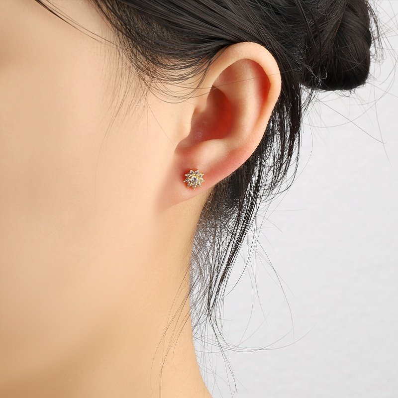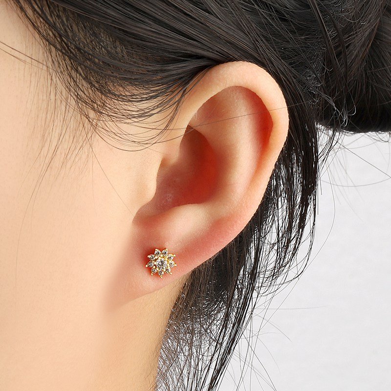 Delicate and radiant, the Flower Pretty Ear Piercings are designed to add a refined sparkle to your everyday look. Crafted from premium 925 sterling silver and finished in rich 18K gold plating, each piece features a floral pavé design set with brilliant white cubic zirconia. A timeless, feminine accent that blends elegance with modern minimalism.