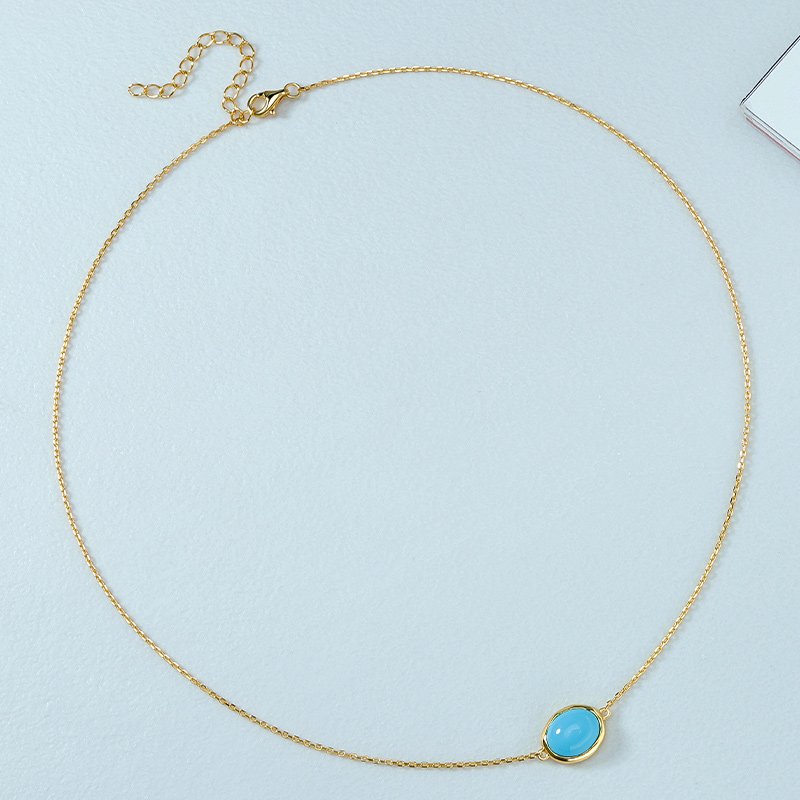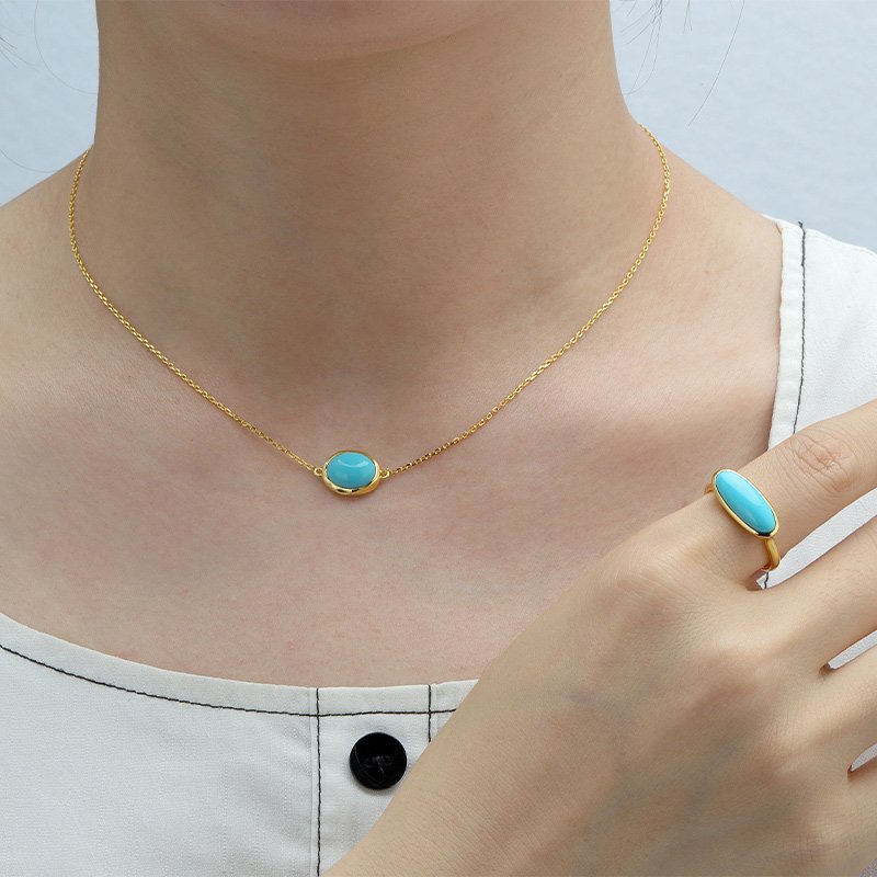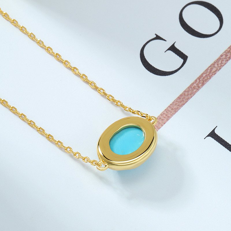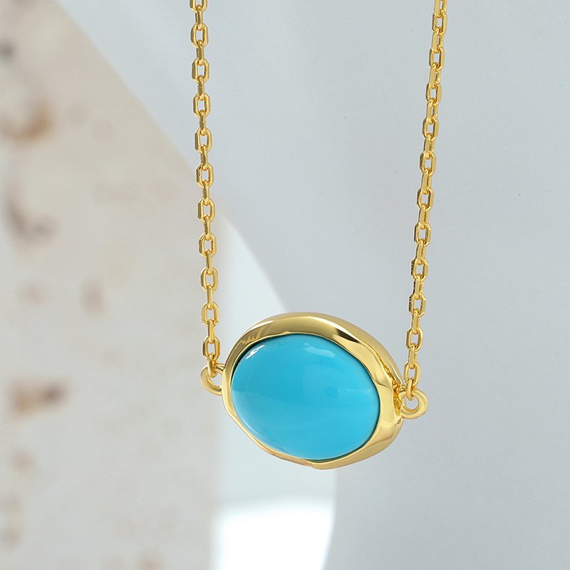 A refined oval turquoise pendant set in a clean geometric frame, designed for effortless elegance. Its balanced proportions and minimalist profile make it an ideal everyday piece, whether worn alone or layered.