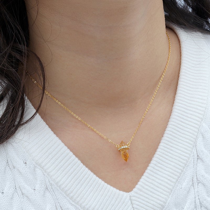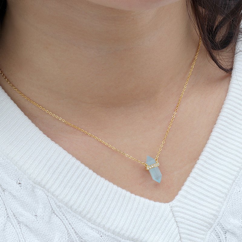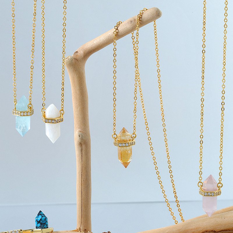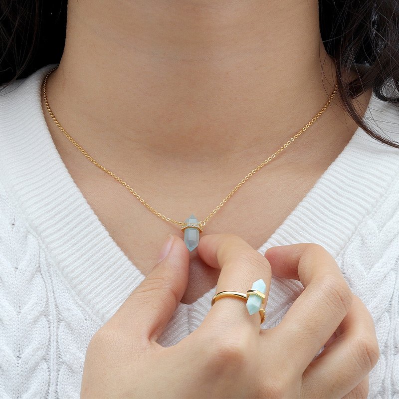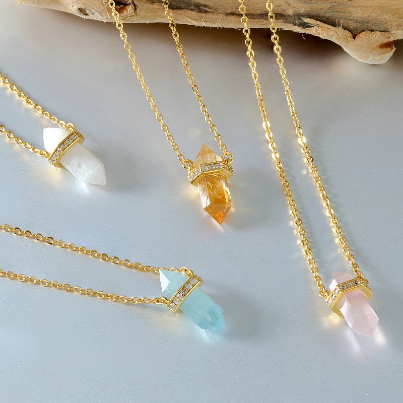 A refined expression of modern geometry, this hexagon gemstone necklace pairs sculptural form with luminous color. Each faceted stone is suspended beneath a CZ-accented cap, creating a balanced silhouette that feels both contemporary and timeless.