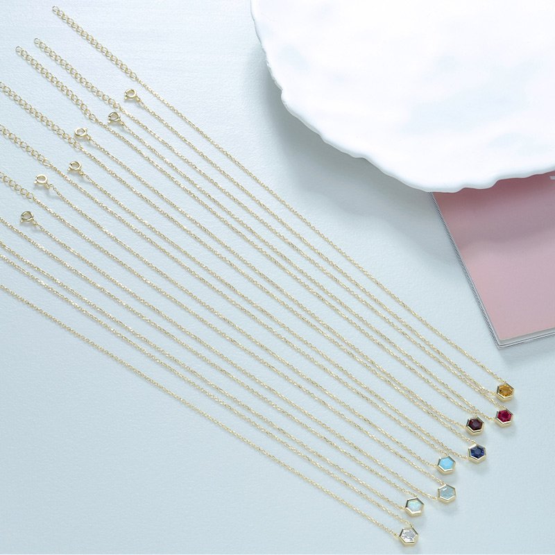 A clean, modern pendant showcasing a hexagon-cut opal with soft iridescent color play. Designed to sit elegantly at the collarbone, this piece blends geometric precision with timeless minimalism—perfect for everyday wear or refined layering.