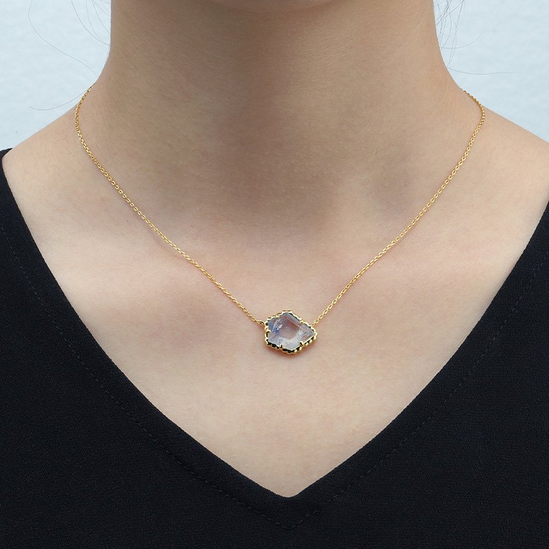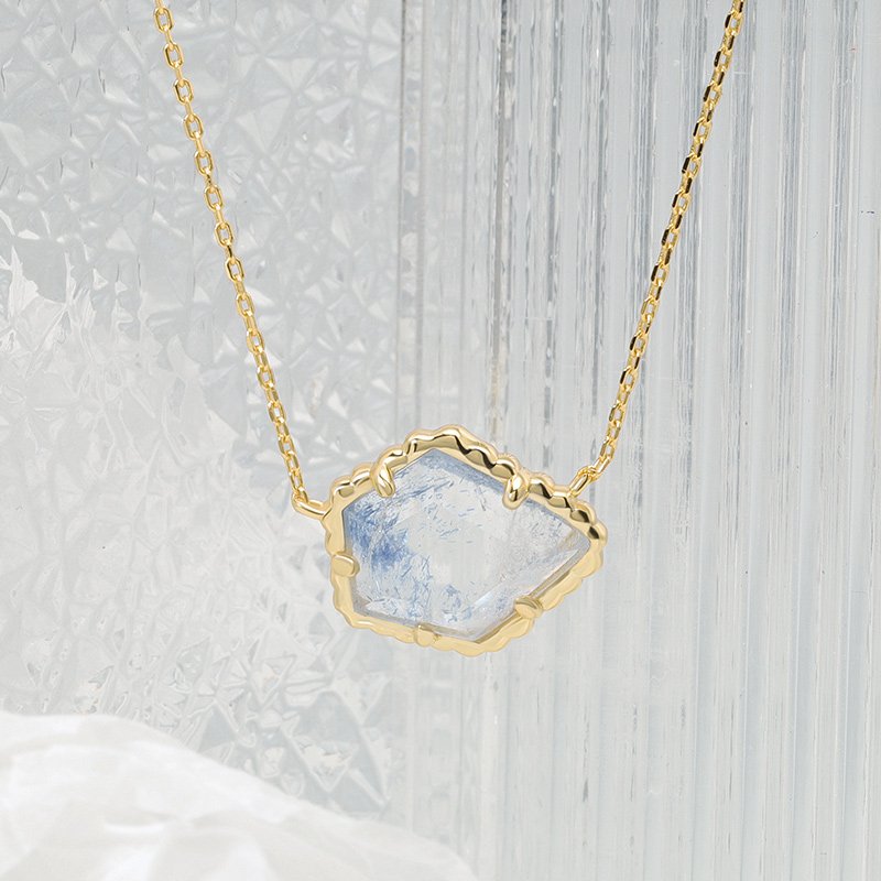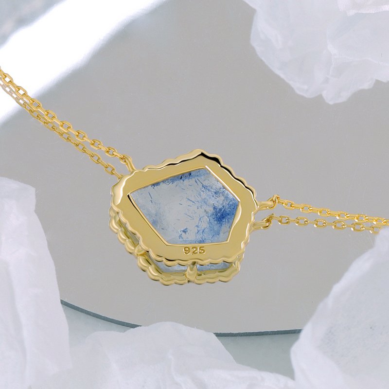 An organic, one-of-a-kind design that celebrates the raw beauty of natural stone. Each pendant features an irregular dumortierite rock, making every piece visually unique. The freeform silhouette and refined setting create a modern, artisanal look with understated elegance.