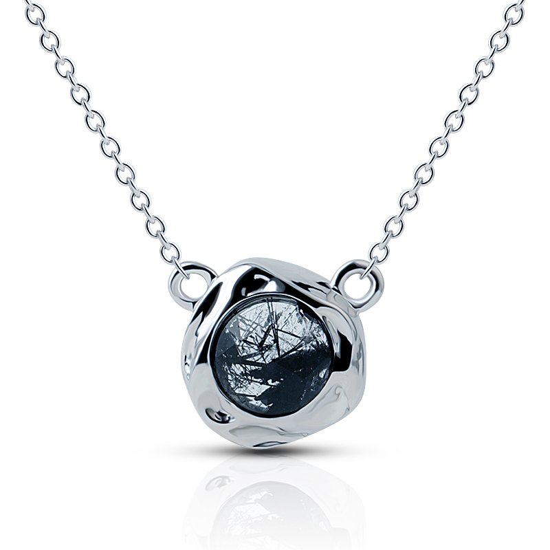 Irregular Textured Black Rutilated Quartz Pendant Necklace – Sterling Silver