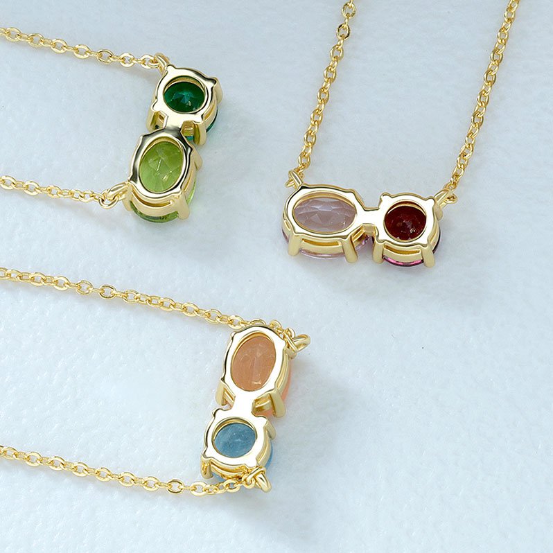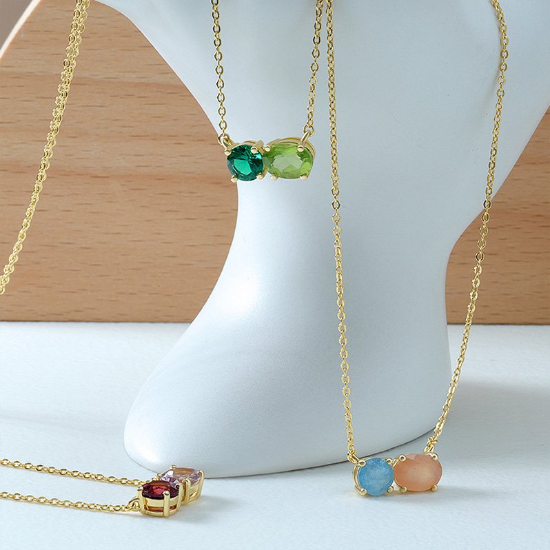 A refined dual-stone necklace designed to highlight contrast, balance, and color harmony. This elegant pendant features two carefully set gemstones that sit side-by-side, creating a modern yet timeless look that elevates everyday wear and special occasions alike.