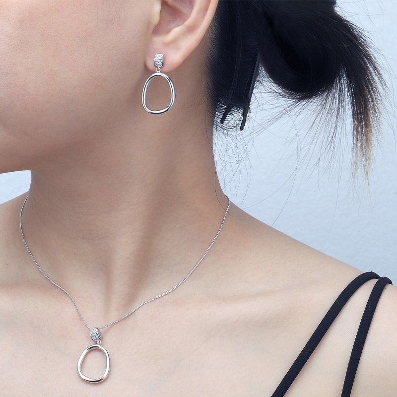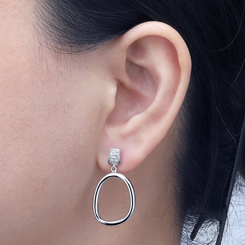 A refined interpretation of modern simplicity, the Minimal Circle Drop Earrings are defined by clean geometry and balanced proportions. A polished open-circle drop is suspended from a pavé-set stud, creating a composed silhouette designed to transition effortlessly from day to evening.