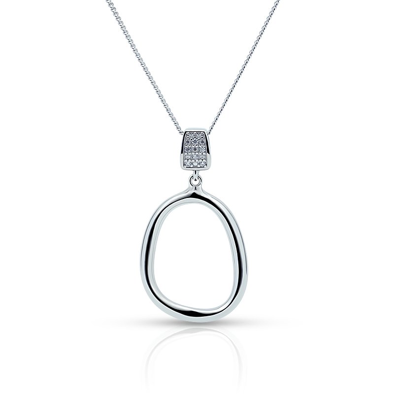 Refined and understated, this minimalist open-circle pendant necklace features a sleek sculptural silhouette accented with subtle cubic zirconia detailing. Crafted in genuine 925 sterling silver and finished in 14K white gold plating, it’s designed for effortless everyday elegance and clean layering.
