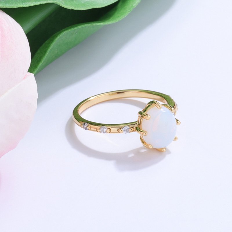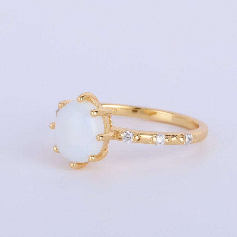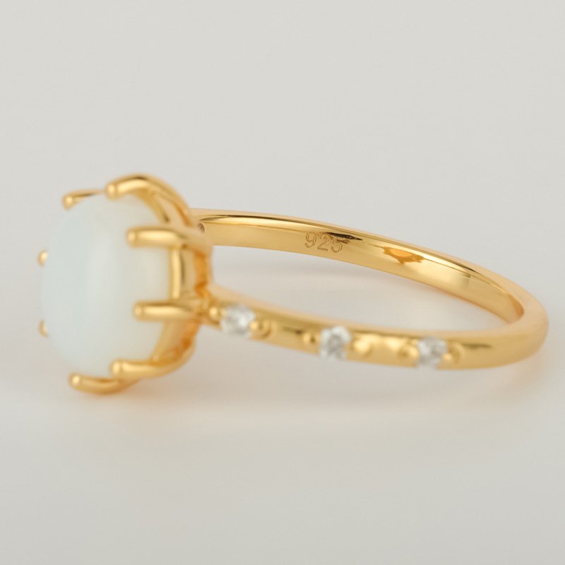 A timeless birthstone ring designed to highlight the soft glow of moonstone. Featuring a classic prong setting and refined gold finish, this piece offers understated elegance with everyday wearability.