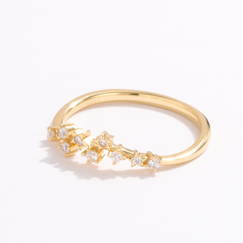 A delicate band inspired by constellations and soft starlight. Designed with a flowing line of pavé-set cubic zirconia, this ring captures subtle sparkle with an elegant, minimalist silhouette—perfect for everyday wear or stacking.