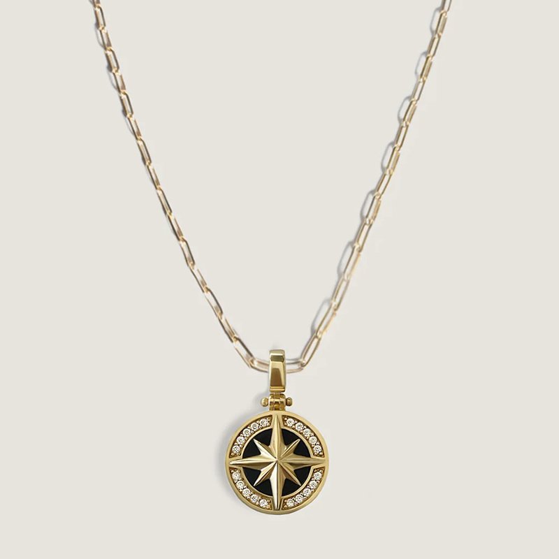 A timeless compass-inspired pendant designed to symbolize guidance, direction, and purpose. The North Star motif is framed by a refined circular silhouette, delivering a balanced blend of meaning and modern elegance suitable for everyday wear or elevated layering.