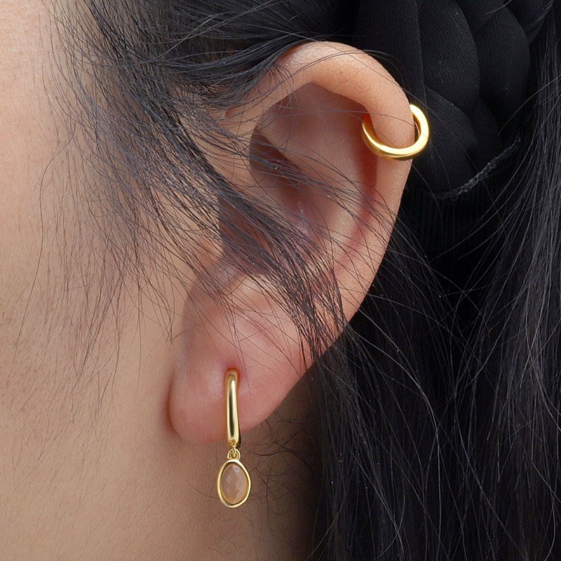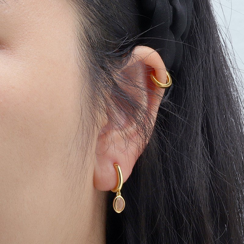 The Orange Moonstone Hoop Earrings bring a refined play of color and light to a timeless silhouette. Crafted from solid 925 sterling silver and finished in rich gold plating, each delicate hoop is accented with a softly faceted oval gemstone that adds warmth, character, and subtle movement.