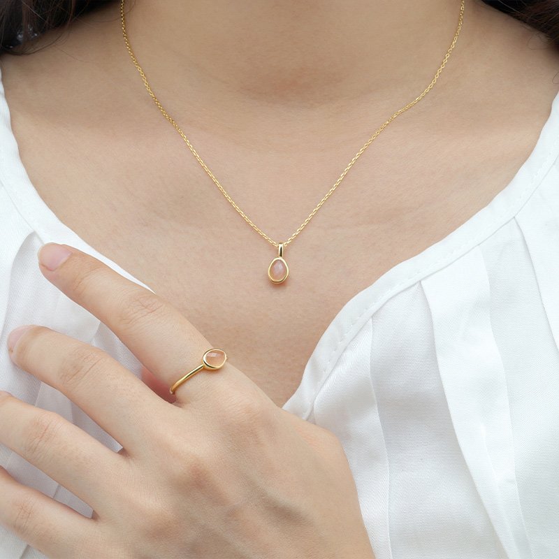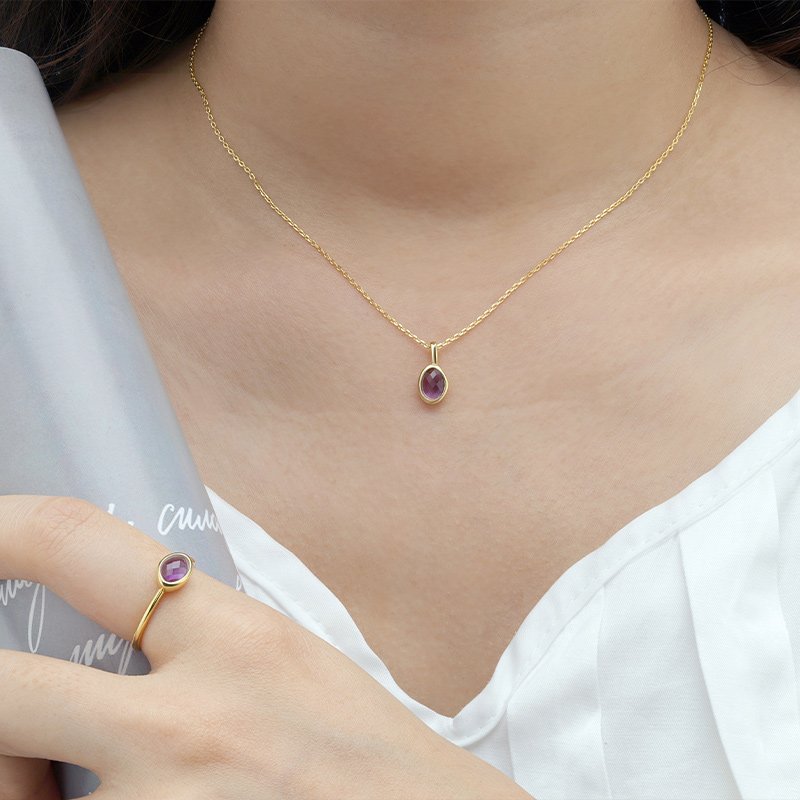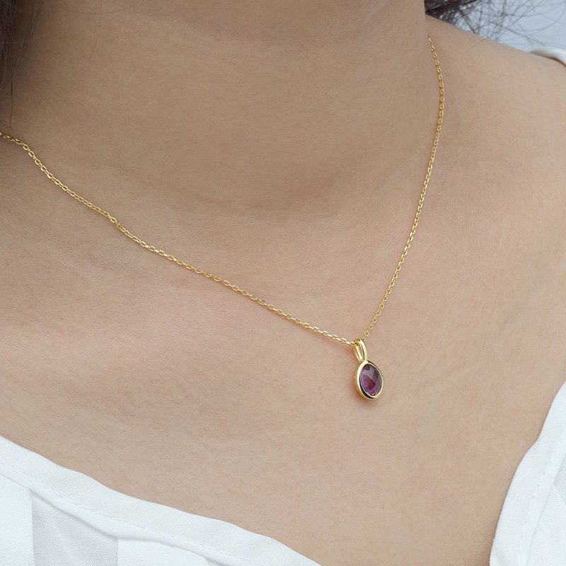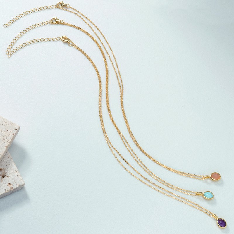 A refined oval pendant designed to highlight color, balance, and understated elegance. Each gemstone is framed in a smooth bezel and suspended from a delicate chain, offering a timeless silhouette that transitions effortlessly from everyday wear to elevated styling.