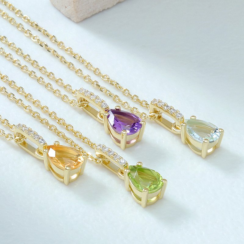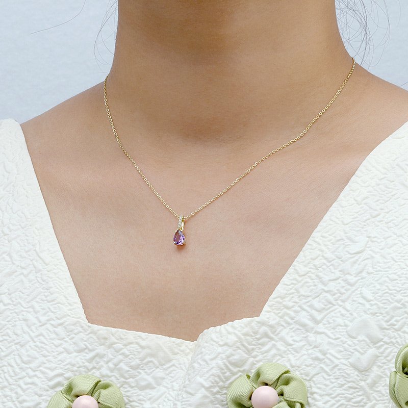 A refined pendant necklace showcasing a pear-shaped amethyst centerpiece, designed to deliver elegant color, balance, and timeless sophistication. Its graceful proportions and rich violet hue make it ideal for both everyday refinement and meaningful gifting.