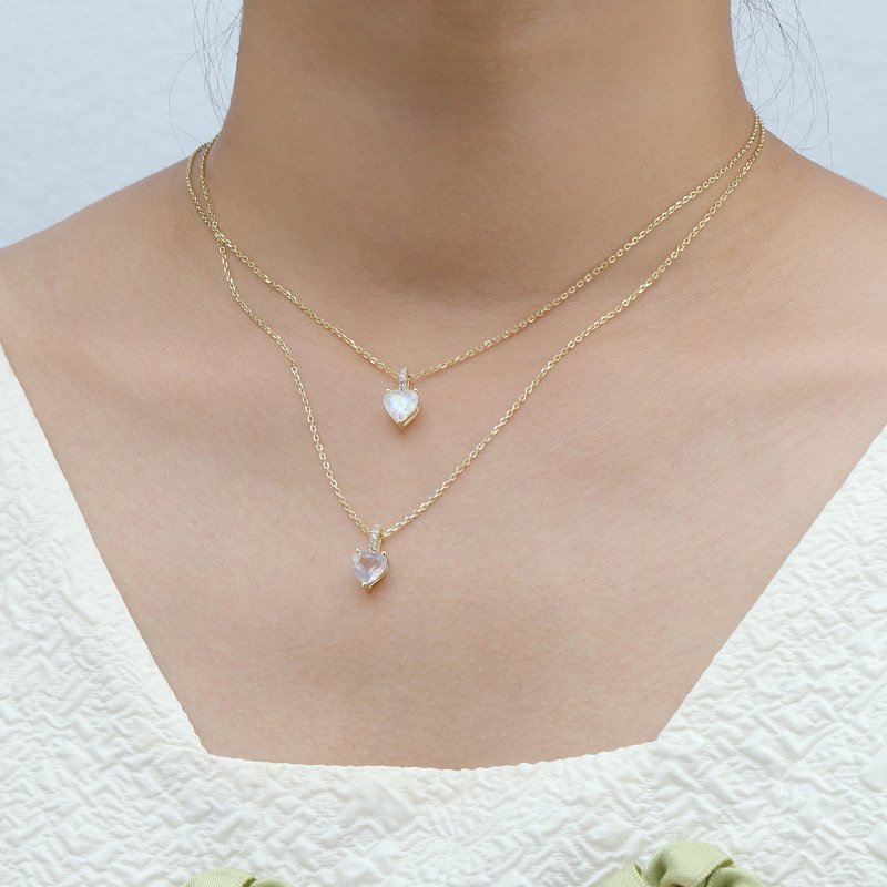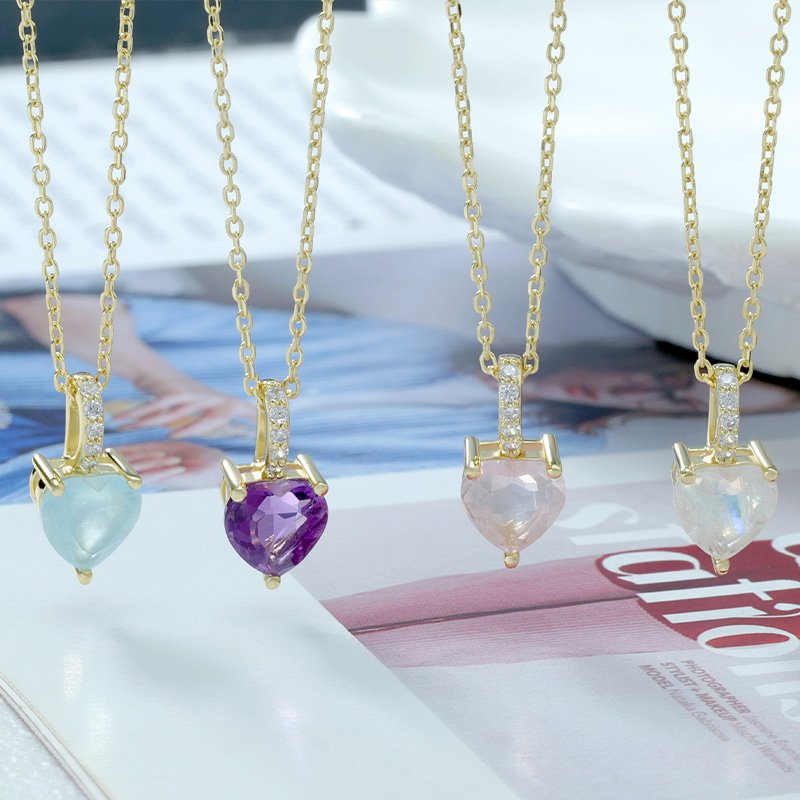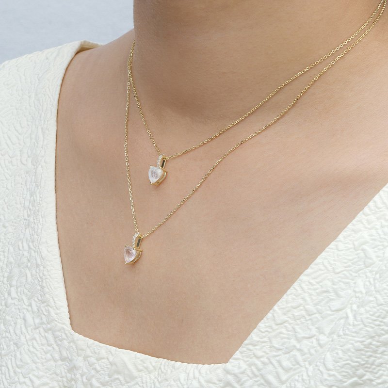A refined pendant necklace featuring a heart-shaped rose quartz centerpiece, designed to embody softness, balance, and timeless elegance. Its delicate blush tone and classic heart silhouette make it an enduring symbol of warmth and refined femininity.