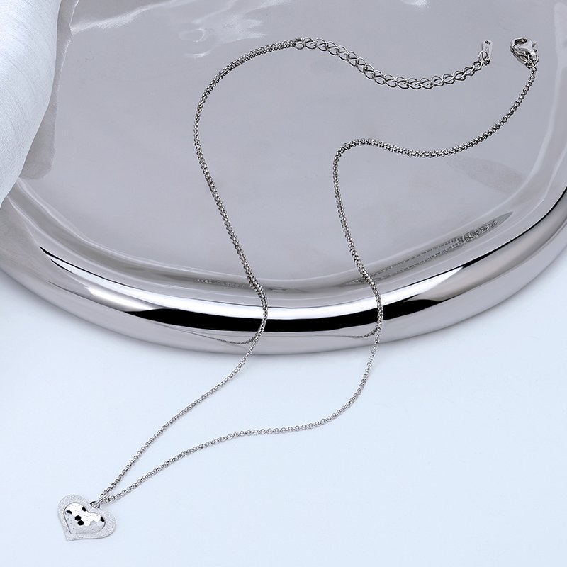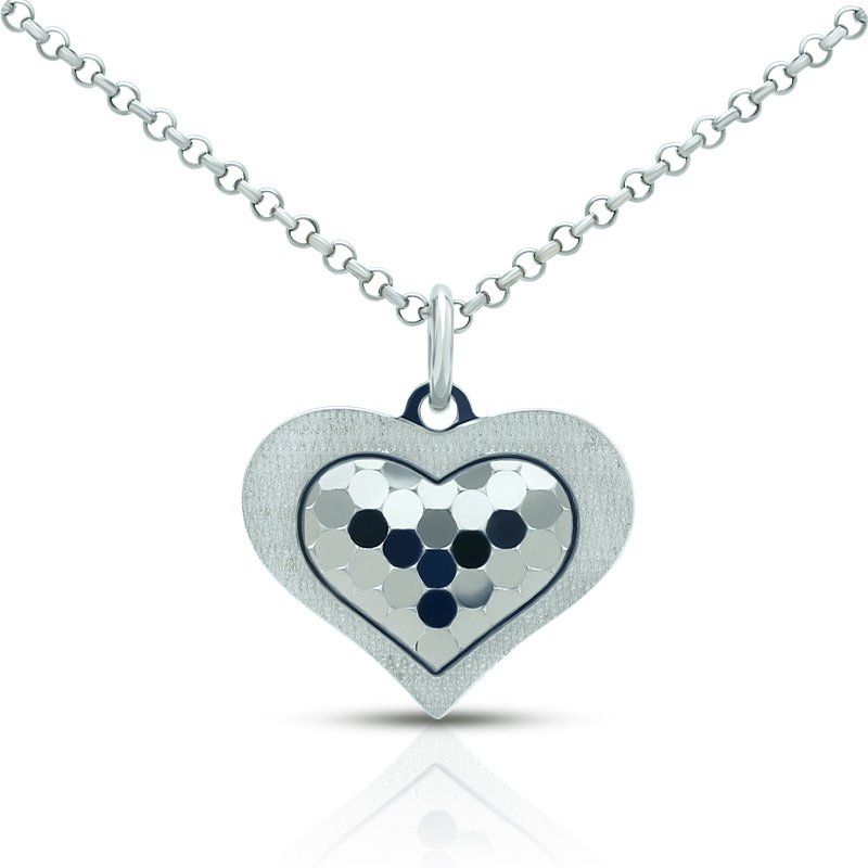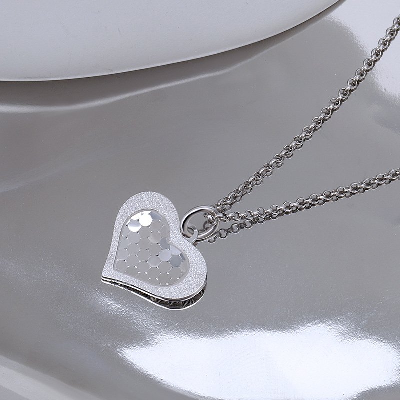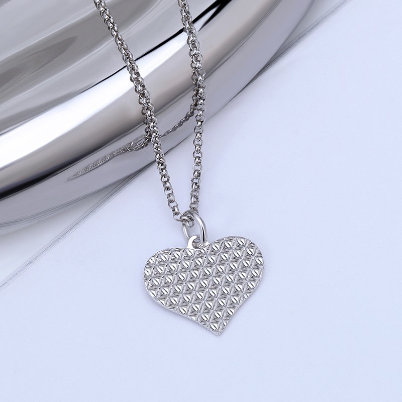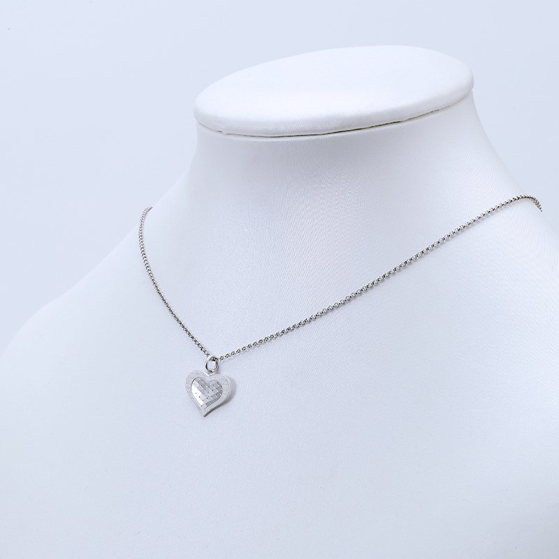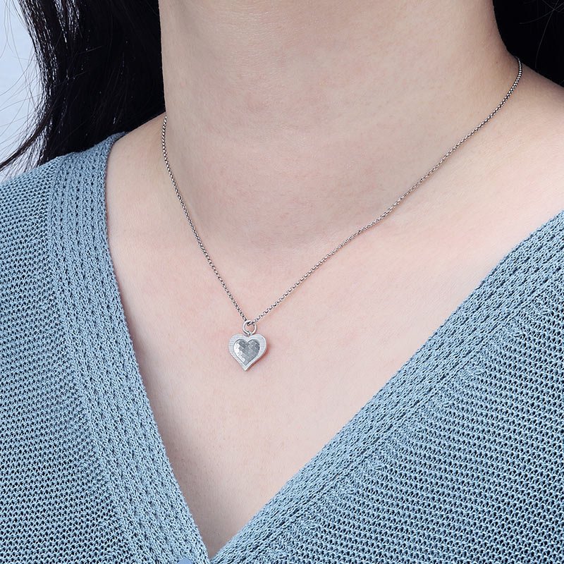 A refined expression of modern romance, this heart pendant necklace is crafted in solid 925 sterling silver and finished with a sleek 18K white gold plating. The subtle textured detailing and polished heart silhouette create a timeless piece designed for effortless everyday elegance.