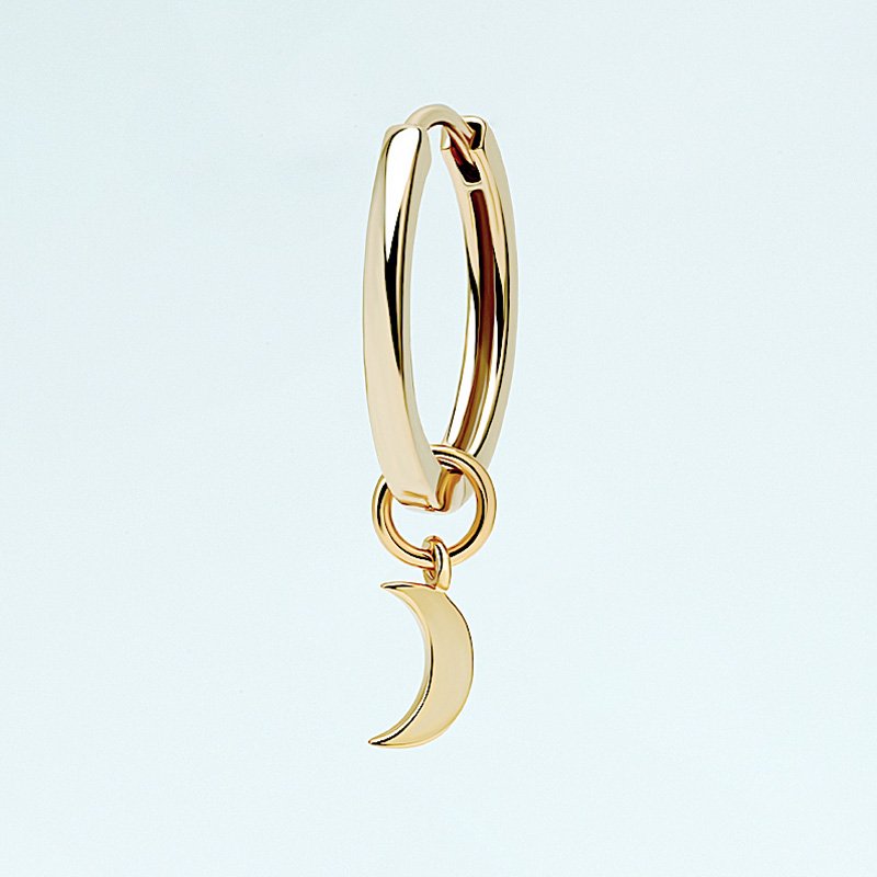 Small hoop earring with a suspended crescent moon charm