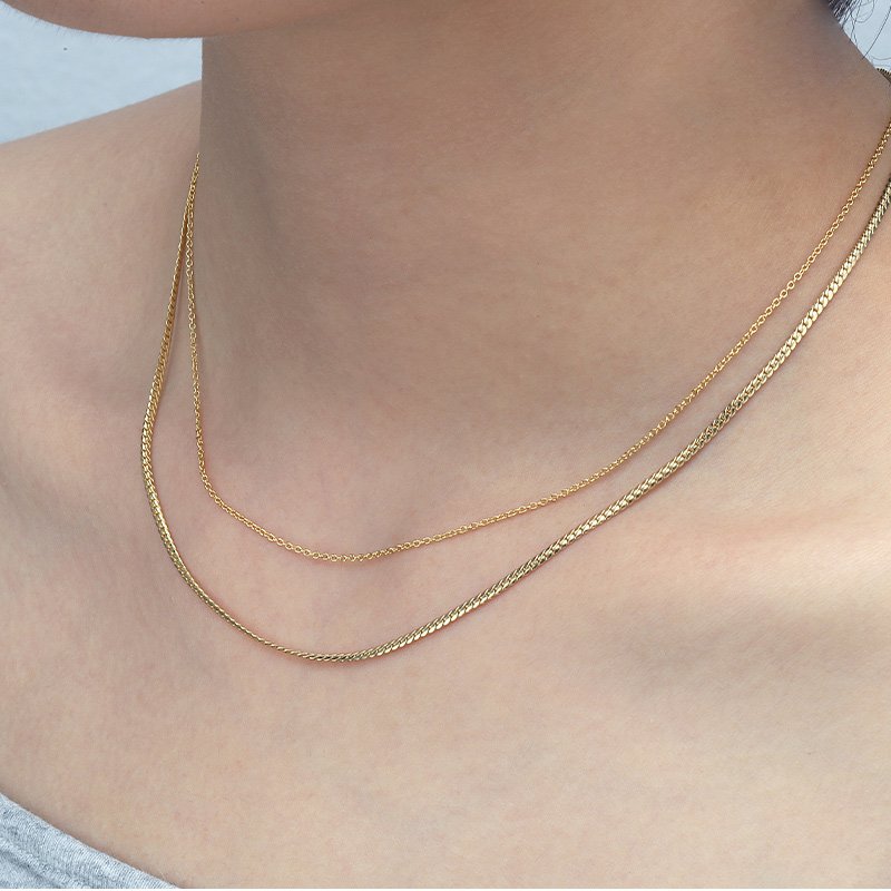 A sleek, ultra-minimal chain necklace designed for everyday wear and effortless layering. Crafted from solid 925 sterling silver and finished with a warm 14K gold-tone plating, this slim O-link chain offers a refined look that pairs seamlessly with pendants or stands beautifully on its own.