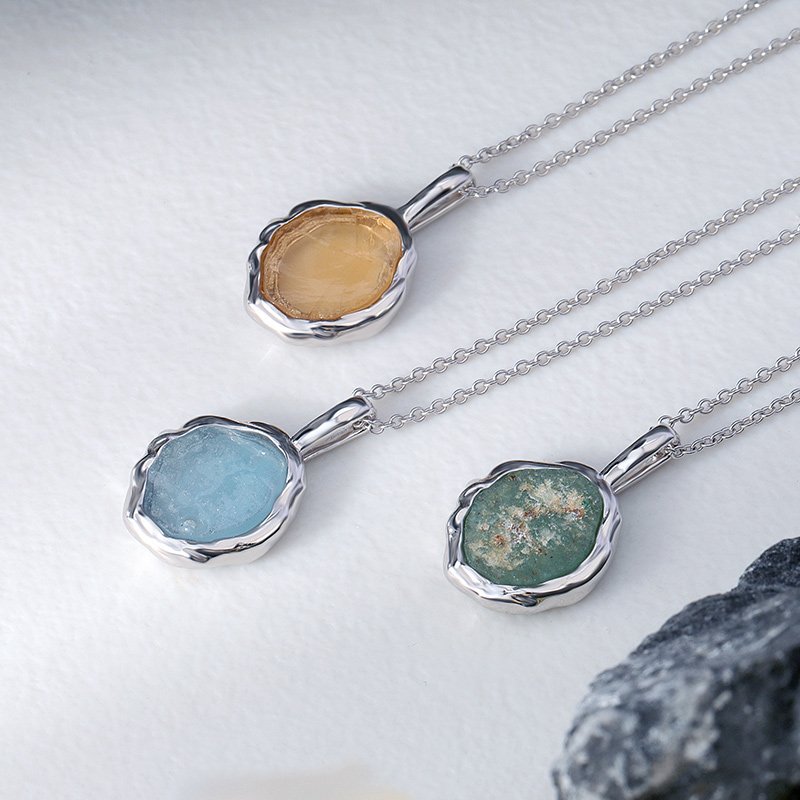 Inspired by natural forms and raw elegance, this textured pendant necklace features an organically shaped peridot stone framed in luminous sterling silver. Finished with refined texture and subtle irregularity, each piece feels artful, modern, and effortlessly distinctive.