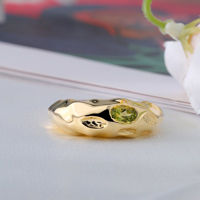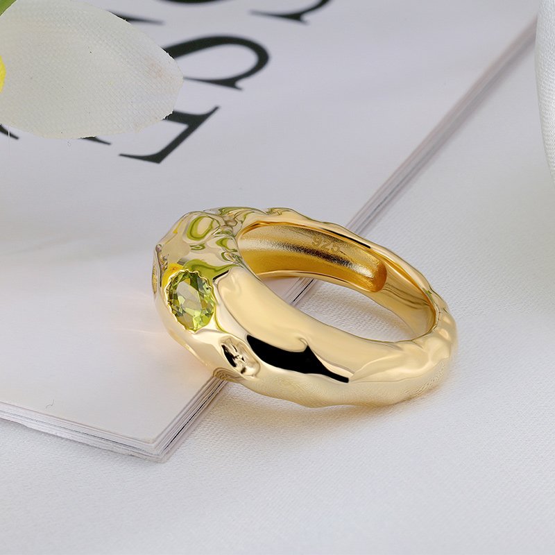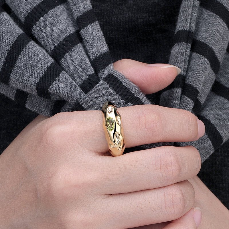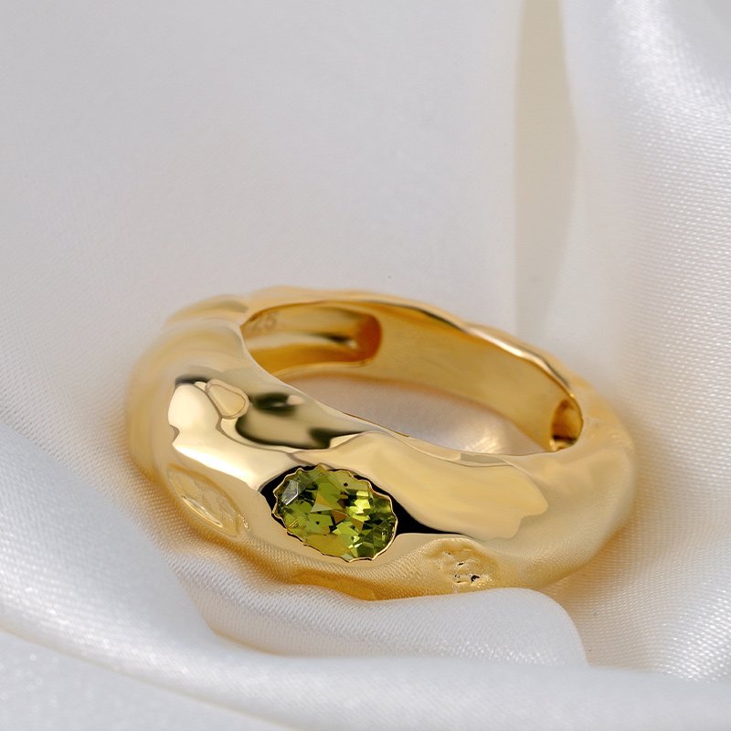 A refined statement ring defined by sculptural texture and subtle color contrast. Designed with an organic, tactile surface and a polished gold finish, this piece balances artistic expression with timeless elegance—ideal for everyday sophistication or elevated styling.