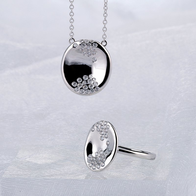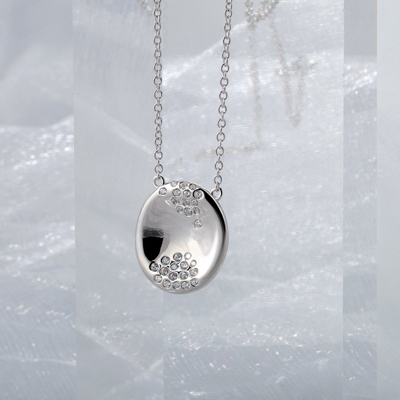 Softly reflective with a satin-like glow, this refined pendant necklace features a star-inspired motif accented by delicate cubic zirconia. Crafted in sterling silver with a white gold–toned finish, it offers a subtle sparkle and timeless elegance suited for everyday wear or special moments.