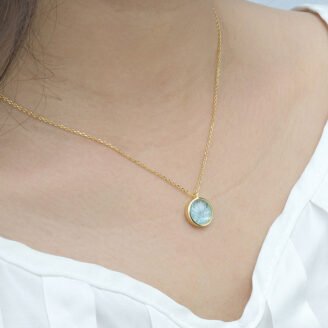 This elegant pendant necklace is crafted in 925 sterling silver and finished with refined gold plating, showcasing a softly polished natural stone framed in a minimalist silhouette. Designed for effortless everyday wear, each stone offers subtle individuality while maintaining a timeless, elevated aesthetic. ABOUT THIS ITEM Crafted from high-quality 925 sterling silver Finished with durable…