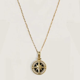 $99 Original price was: $99.$59.40Current price is: $59.40.A timeless compass-inspired pendant designed to symbolize guidance, direction, and purpose. The North Star motif is framed by a refined circular silhouette, delivering a balanced blend of meaning and modern elegance suitable for everyday wear or elevated layering. ABOUT THIS ITEM North Star compass motif with refined circular framing Clean, symmetrical design with polished detailing…