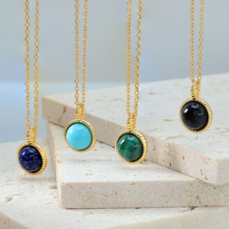 $79 Original price was: $79.$47.40Current price is: $47.40.This refined cabochon pendant highlights the natural beauty of polished stone, set in a clean, understated frame designed to let color and texture take center stage. Finished in warm gold tones, the necklace offers a versatile silhouette that transitions effortlessly from everyday wear to elevated styling. About This Item Crafted in solid 925 sterling silver…