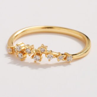 $99 Original price was: $99.$59.40Current price is: $59.40.A delicate band inspired by constellations and soft starlight. Designed with a flowing line of pavé-set cubic zirconia, this ring captures subtle sparkle with an elegant, minimalist silhouette—perfect for everyday wear or stacking. ABOUT THIS ITEM Star-inspired pavé design with refined sparkle Set with high-grade cubic zirconia for a clean, luminous finish Crafted in 925…