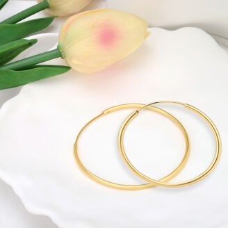 Bold in scale yet refined in execution, the Oversized Gold Hoop Earrings are designed to deliver confident presence with timeless restraint. Crafted in sterling silver and finished in a smooth gold tone, the 5.5 cm diameter creates a strong silhouette while maintaining a lightweight, balanced feel for everyday wear. This is a foundational statement piece…