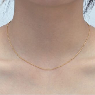 $89 Original price was: $89.$53.40Current price is: $53.40.A sleek, ultra-minimal chain necklace designed for everyday wear and effortless layering. Crafted from solid 925 sterling silver and finished with a warm 14K gold-tone plating, this slim O-link chain offers a refined look that pairs seamlessly with pendants or stands beautifully on its own. ABOUT THIS ITEM Minimal 1mm O-link chain necklace with a…