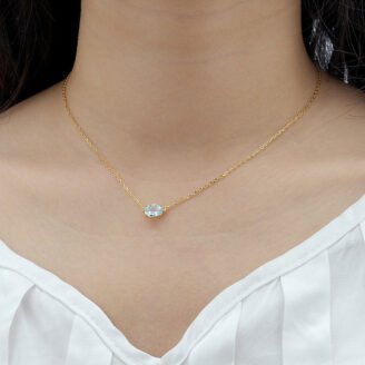 A timeless birthstone necklace designed to celebrate December with a soft sky-blue crystal centerpiece. This piece offers a refined balance of brilliance and simplicity, making it ideal for everyday wear or meaningful gifting. Elegant on its own and effortless to layer, it delivers understated luxury with personal significance. Product Details • Oval-cut sky blue crystal…
