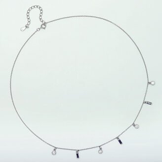 A delicate charm necklace featuring bezel-set cubic zirconia accents and slim vertical charm details. Crafted from solid 925 sterling silver with an elegant 18K gold–tone finish, this piece offers a refined balance of sparkle and movement, perfect for everyday wear or layered styling. ABOUT THIS ITEM Dainty charm chain necklace with multiple CZ accents for…