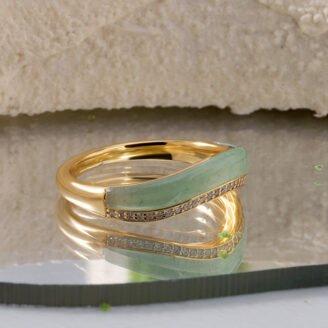 Refined and minimal with a soft organic flow, the Dainty Green Aventurine Slim Wave Ring features a gently contoured wave band accented by a smooth green aventurine inlay and subtle cubic zirconia detailing. Crafted in premium 925 sterling silver and finished with 18K yellow gold plating, this ring delivers understated elegance with a modern, feminine…